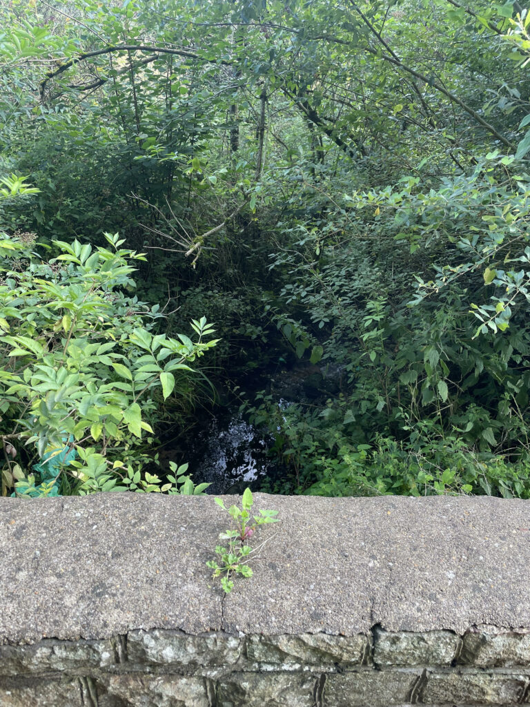 A small stone bridge over a stream is a clue to the exact location of the boundary on Scotland Lane between Brislington and Stockwood