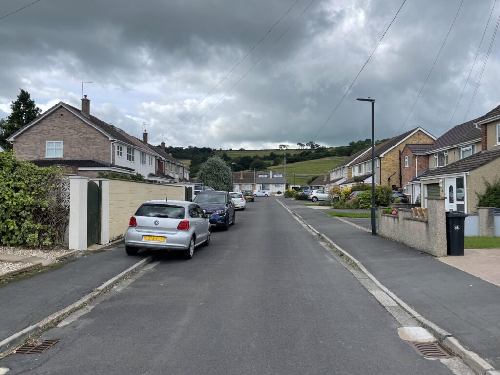 On Overndale Road in Downend, the even numbered houses had their bins out as they are in Bristol but the odd numbers are in South Glos so have a different bin day. There appears to be an old stone wall on the Gloucestershire side in front of what is now the Pathway Learning Centre. Cassell Road also in Downend forms the exact boundary, with the Downend Tavern to let.