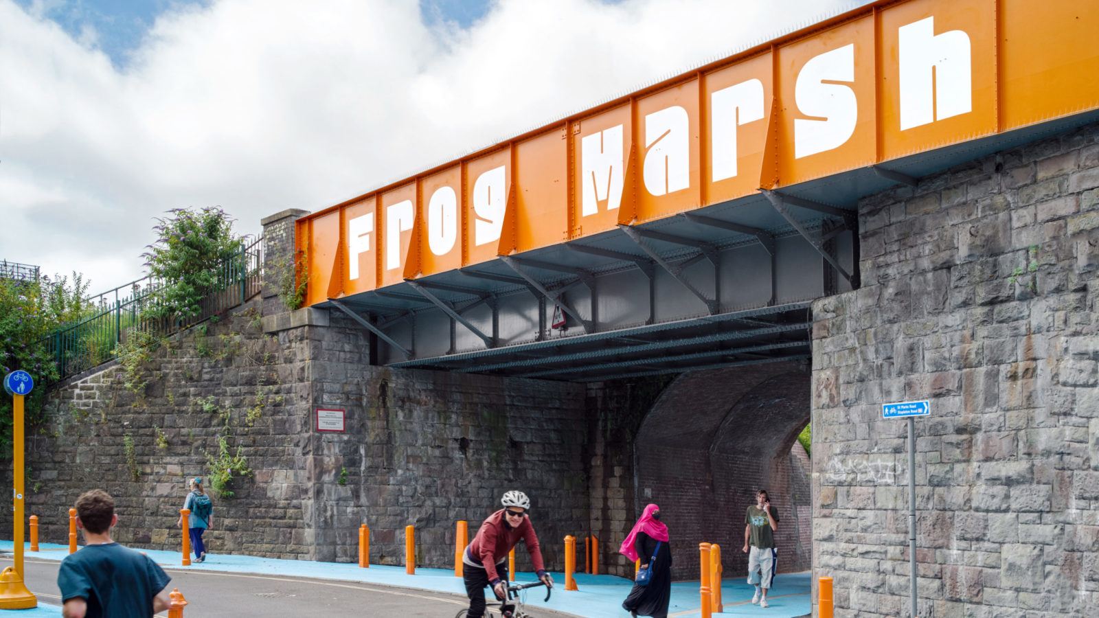 Studio Ard were commissioned to design a bespoke Frog Marsh typeface that stretches along the bridge and events are planned in spring to celebrate the new space.