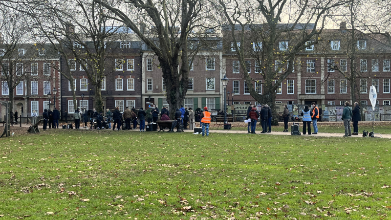 Queen Square has had a Victorian makeover for the period drama – photo: Stella Rogers