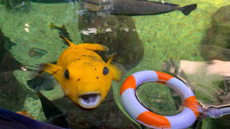 Winston the pufferfish is keeping in shape while the zoo’s on lockdown