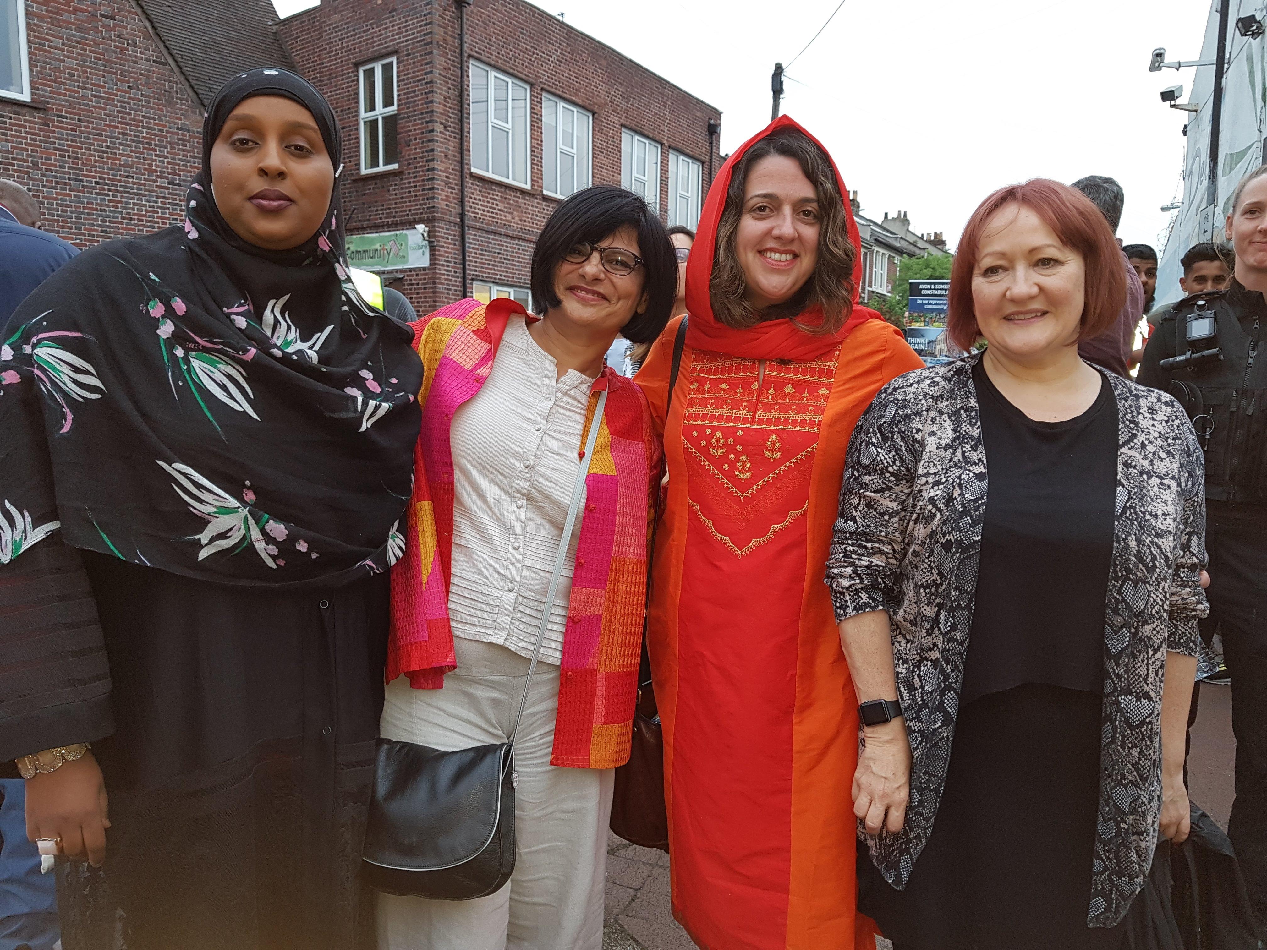 L-R: Amal Ali, part of the Grand Iftar organising committee, MP for Bristol West Thangam Debbonaire, director of equality charity SARI Alex Raikes and MP for Bristol East Kerry McCarthy