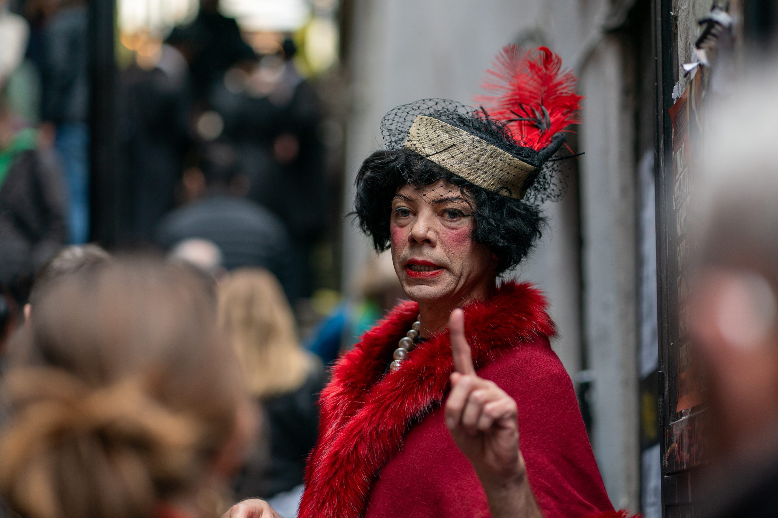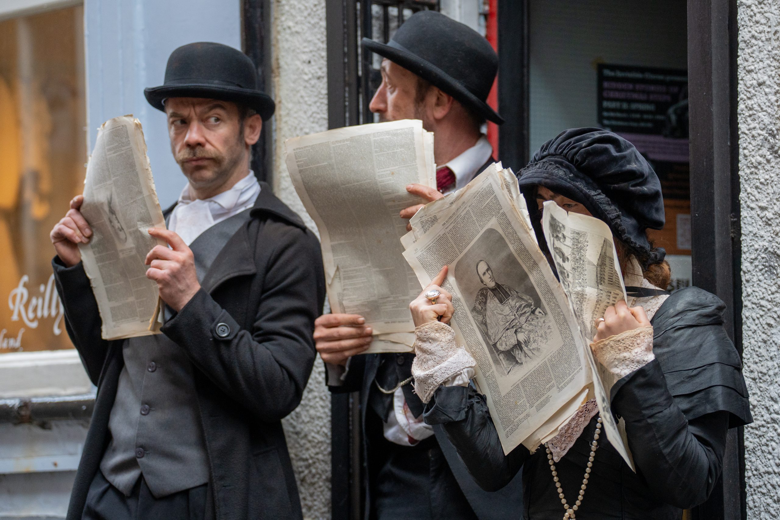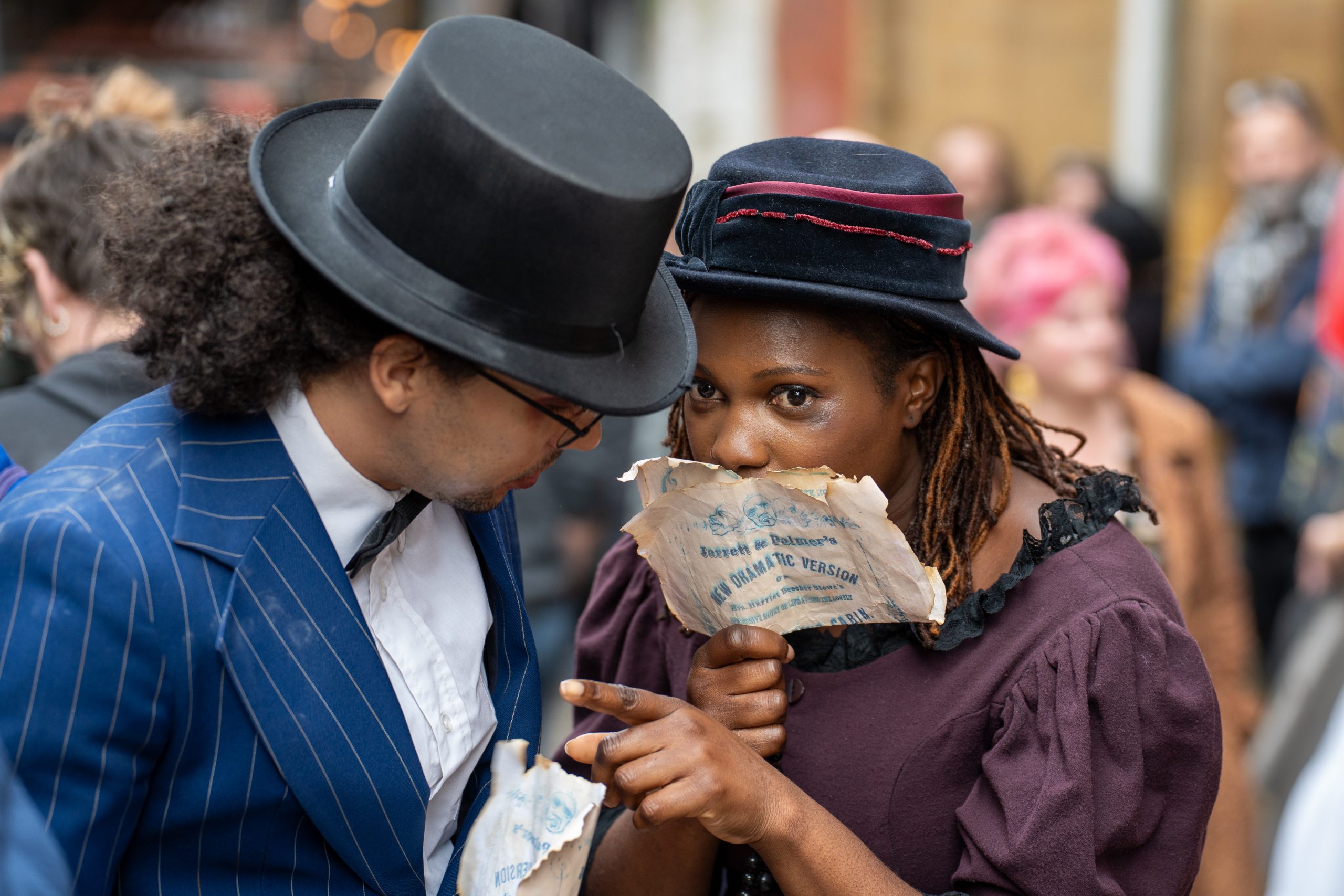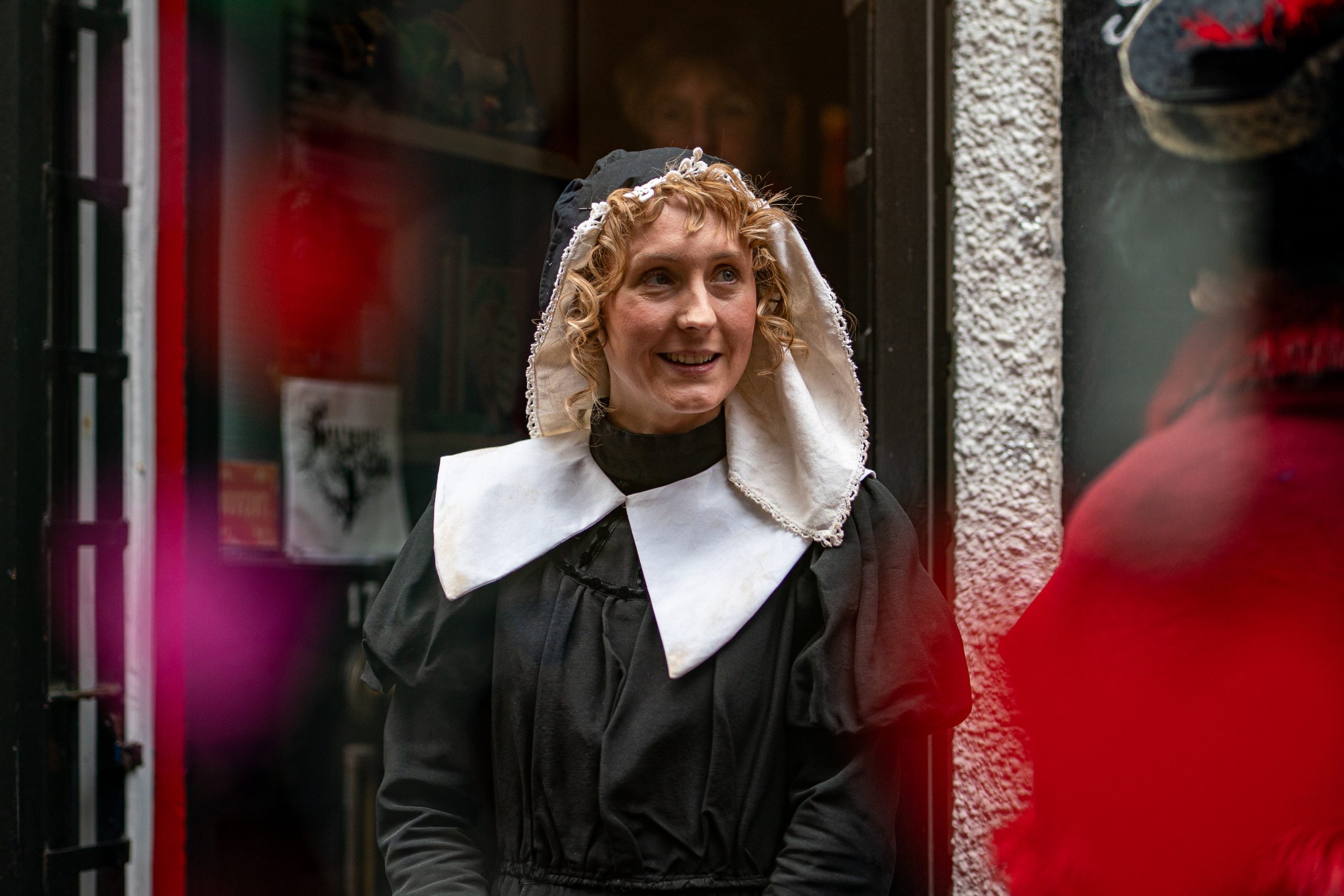 After a successful debut of their ‘Hidden Stories of the Steps’ project last year, The Invisible Circus, a Bristol-based theatre and circus company, returned to the Christmas Steps on Saturday for their interactive display of characters from Bristol’s recent past.