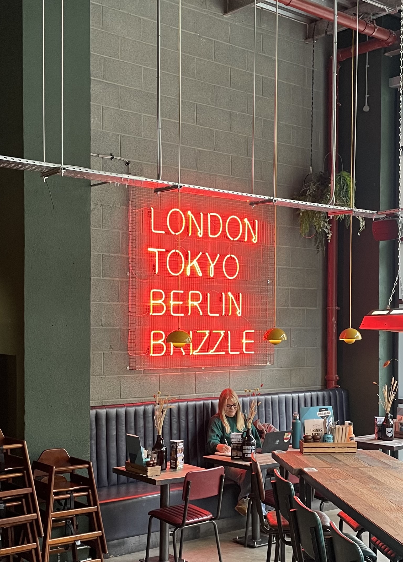 First it was displayed in lurid red neon at the new Brewdog bar in the area of the Harbourside now rebranded to Canons Yard. Then it appeared in the window of the soon-to-open Mowgli restaurant on Corn Street. Next, the new Miss Millie’s in the centre dedicated almost an entire wall to it.