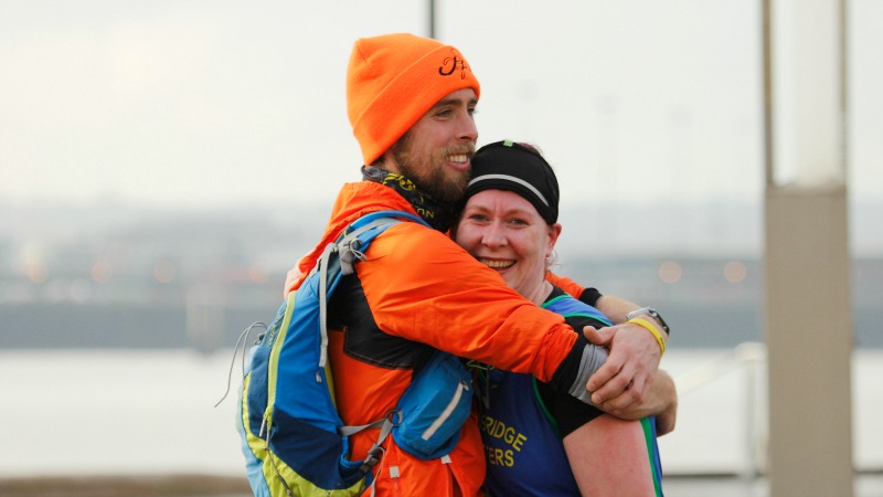 “I just decided to round it up to 400. And then I added one,” he says, approaching the Clifton Suspension Bridge, phone in hand and a gaggle of runners and supporters behind him.