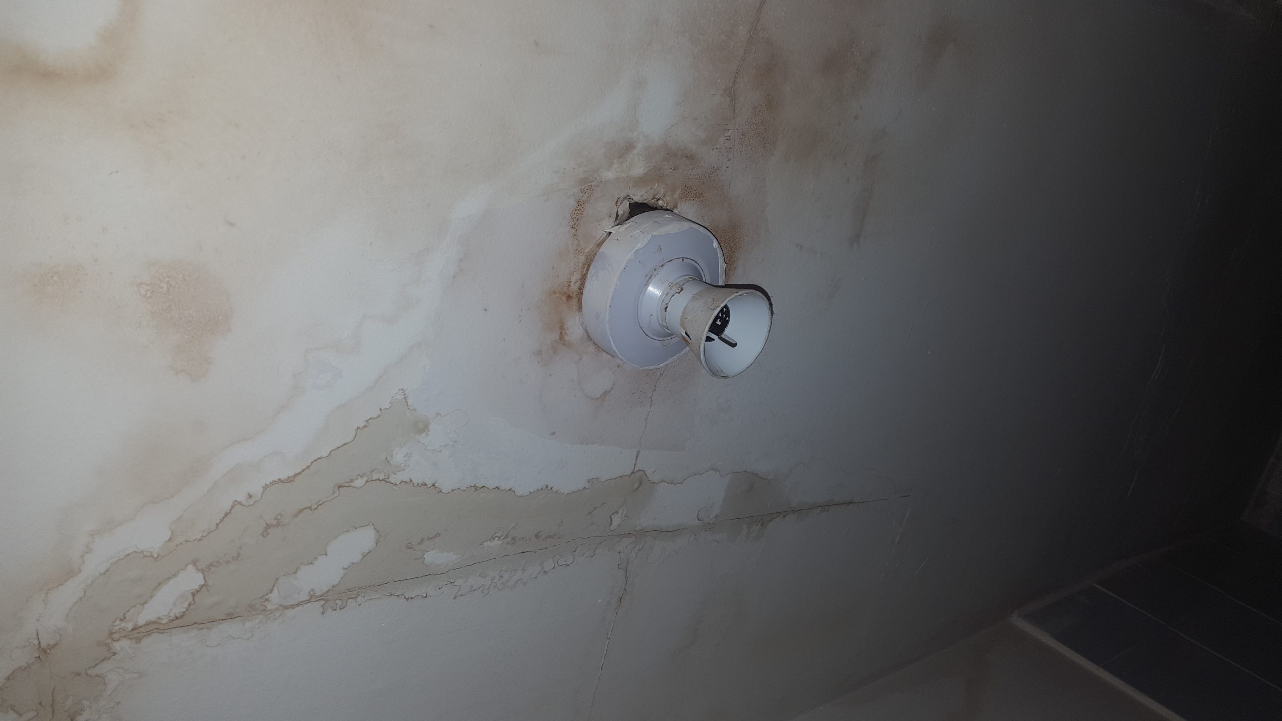 The bathroom leak has been occurring for almost a month. A previous leak in the ceiling, in their child’s bedroom, wasn’t fixed for over three years. Photo by Alexandra Fernandez