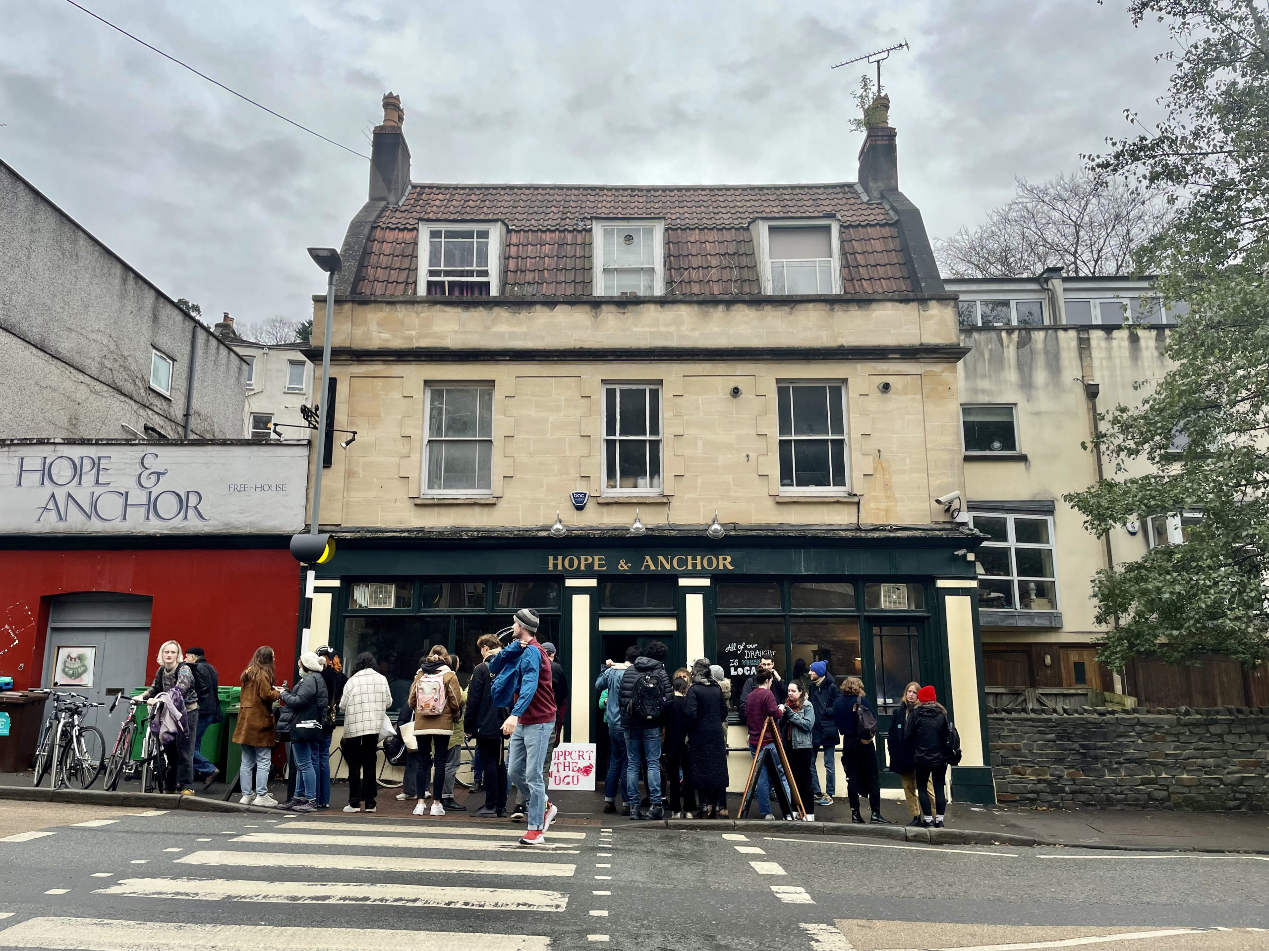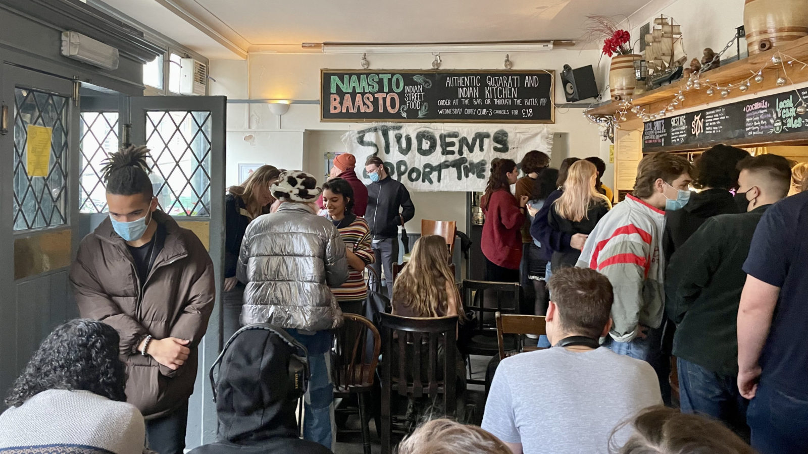 Next to the bar, a well-used banner reading ‘students support the strike’ in bold black paint was proudly suspended underneath a chalkboard advertising the Hope & Anchor’s Indian street food menu from Naasto Basto.