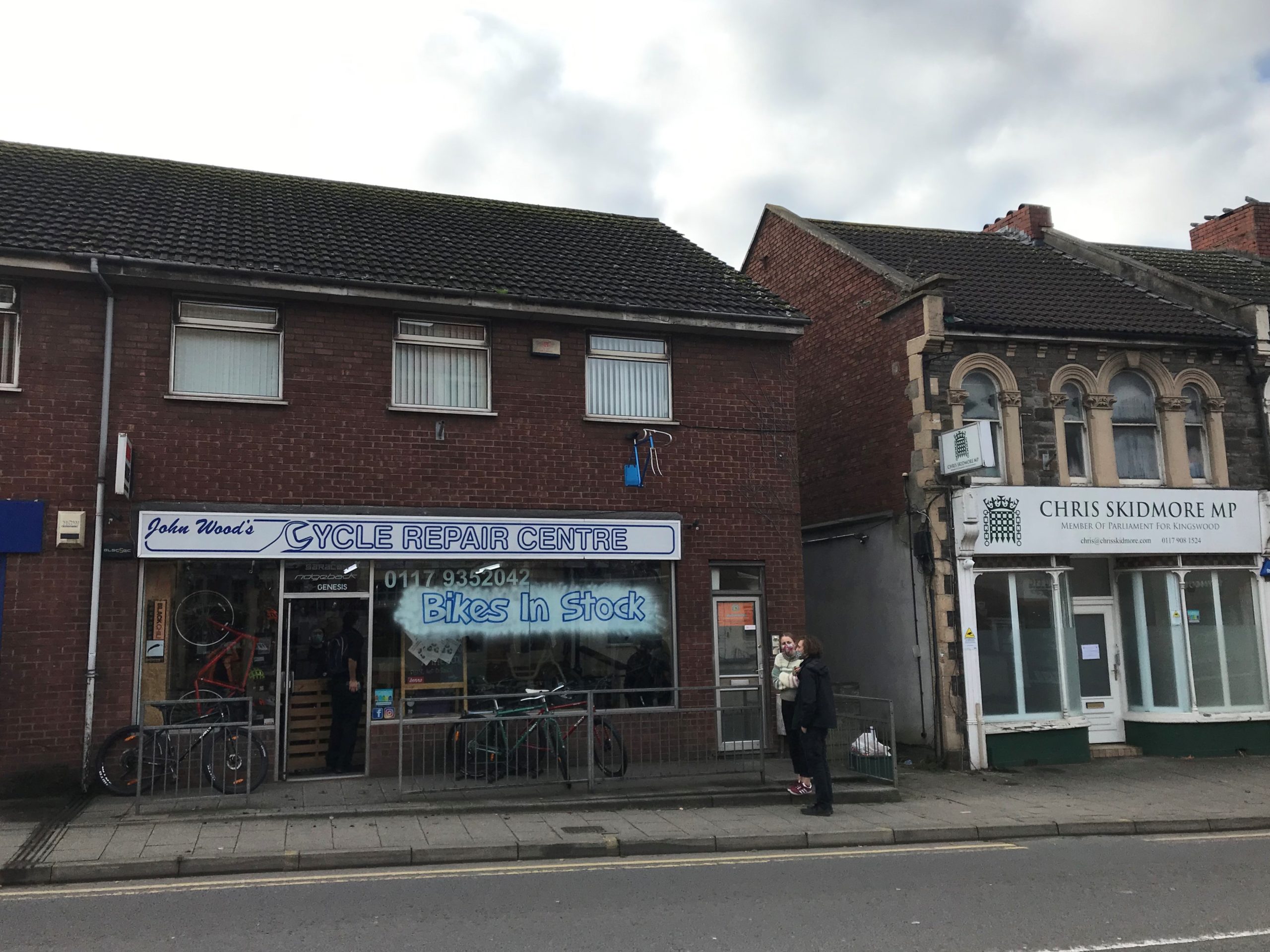 Between a betting shop and the constituency office of Chris Skidmore, John Wood’s cycle shop continued to do a roaring trade, customers not able to enter the shop but instead talking to staff above a hatch made from a wooden crate.