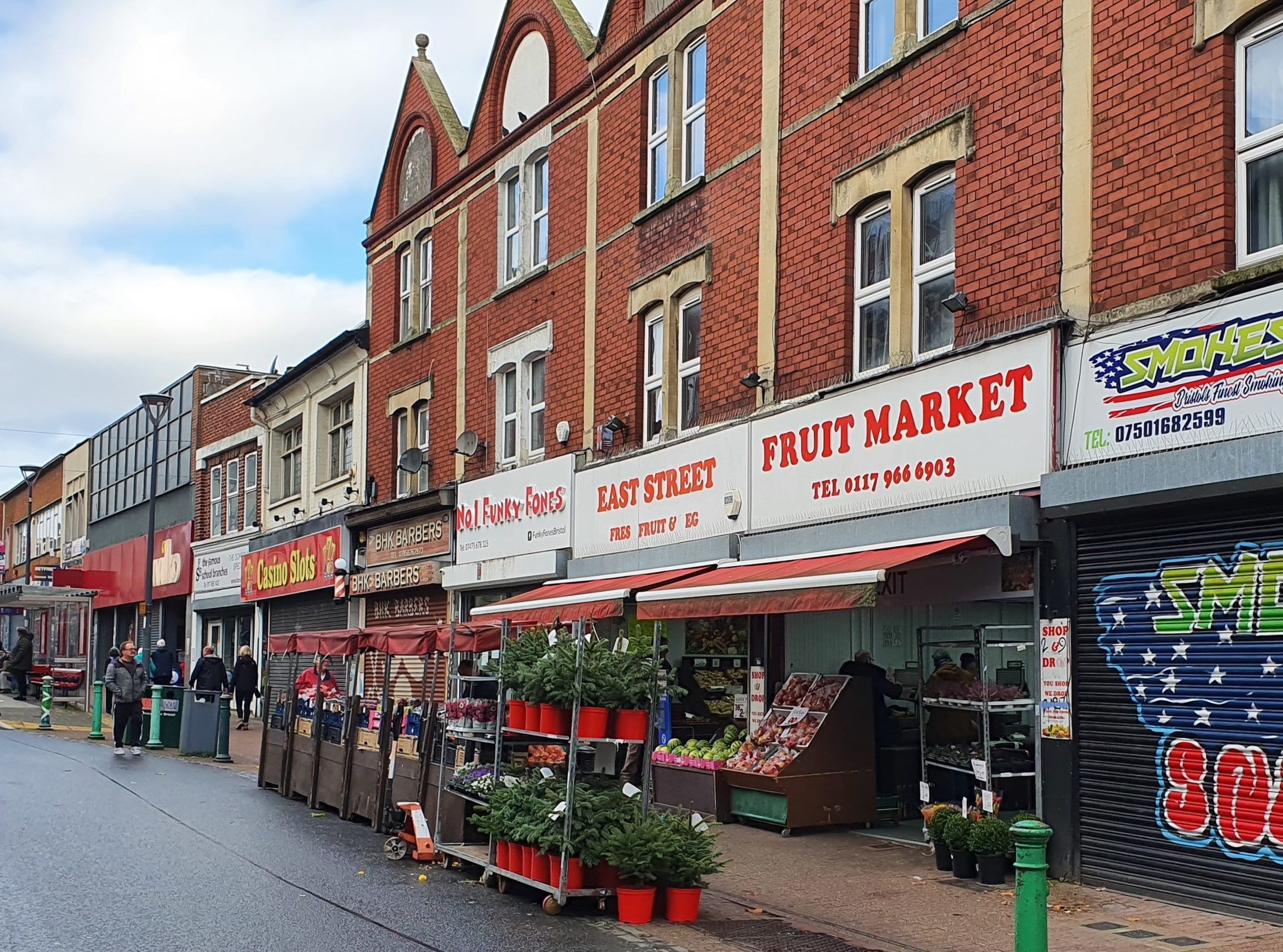 On East Street, the shuttered shop windows are a stark reminder of the toll the latest measures are having on many businesses. The smell of baked goods drifts down the street from the Bristol Loaf’s corner premises, but there none of the usual queues backing up the pavement waiting patiently for a table as it’s takeaway goods only for now.