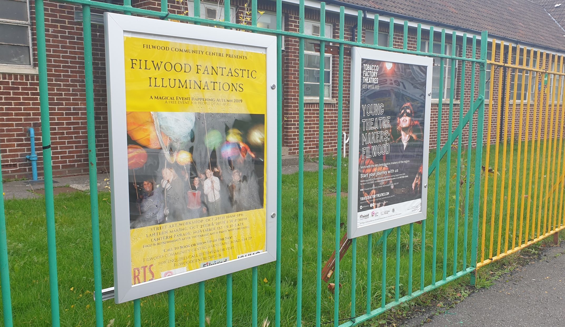 A poster outside Filwood Community Centre still advertises the 2019 lantern parade. It’s a tantalising reminder of times past: of large group gatherings, unmasked bus journeys and community events.