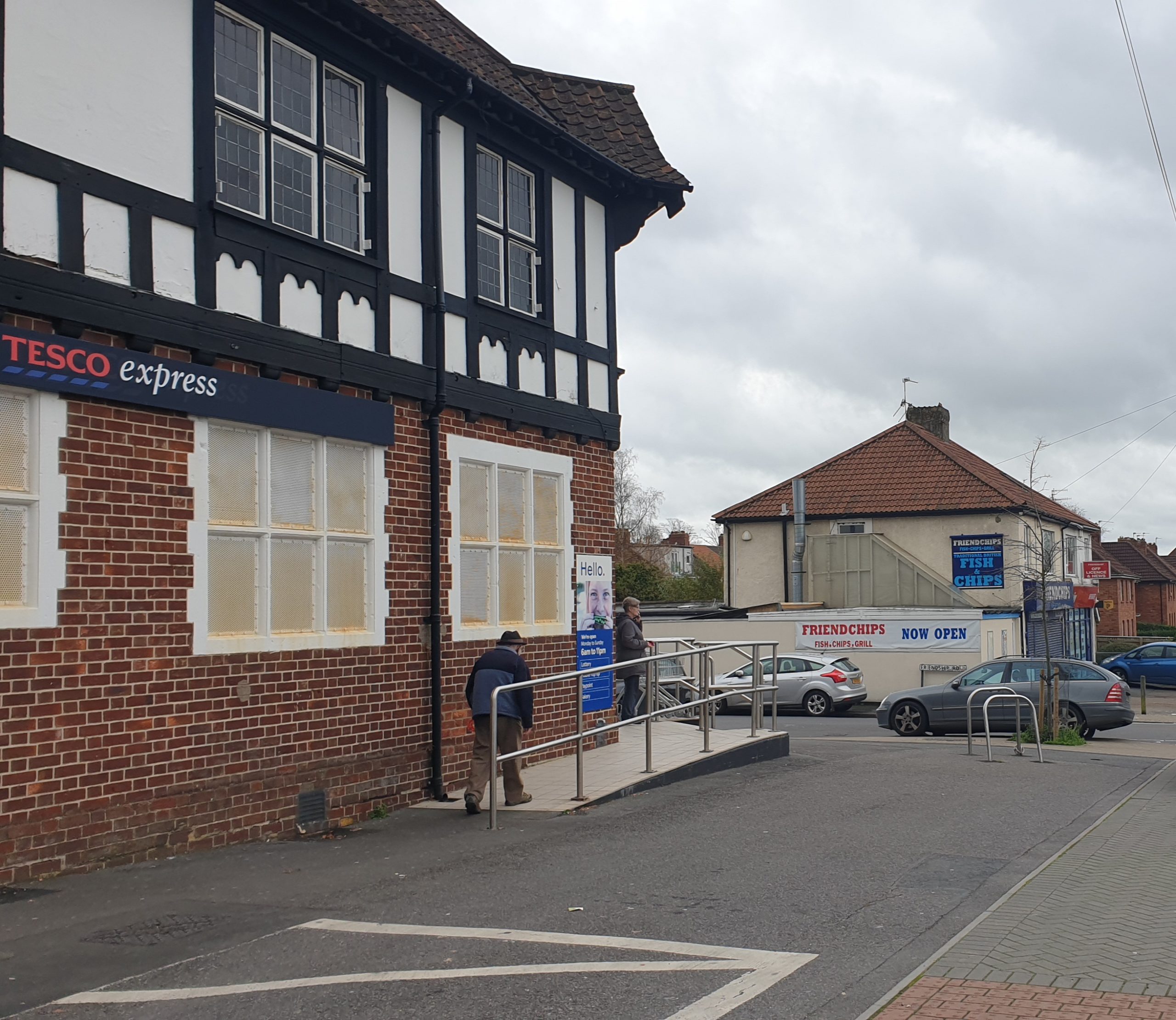Tesco Express, unlike its neighbouring closed takeaways, is a hub of activity on a recent Wednesday morning