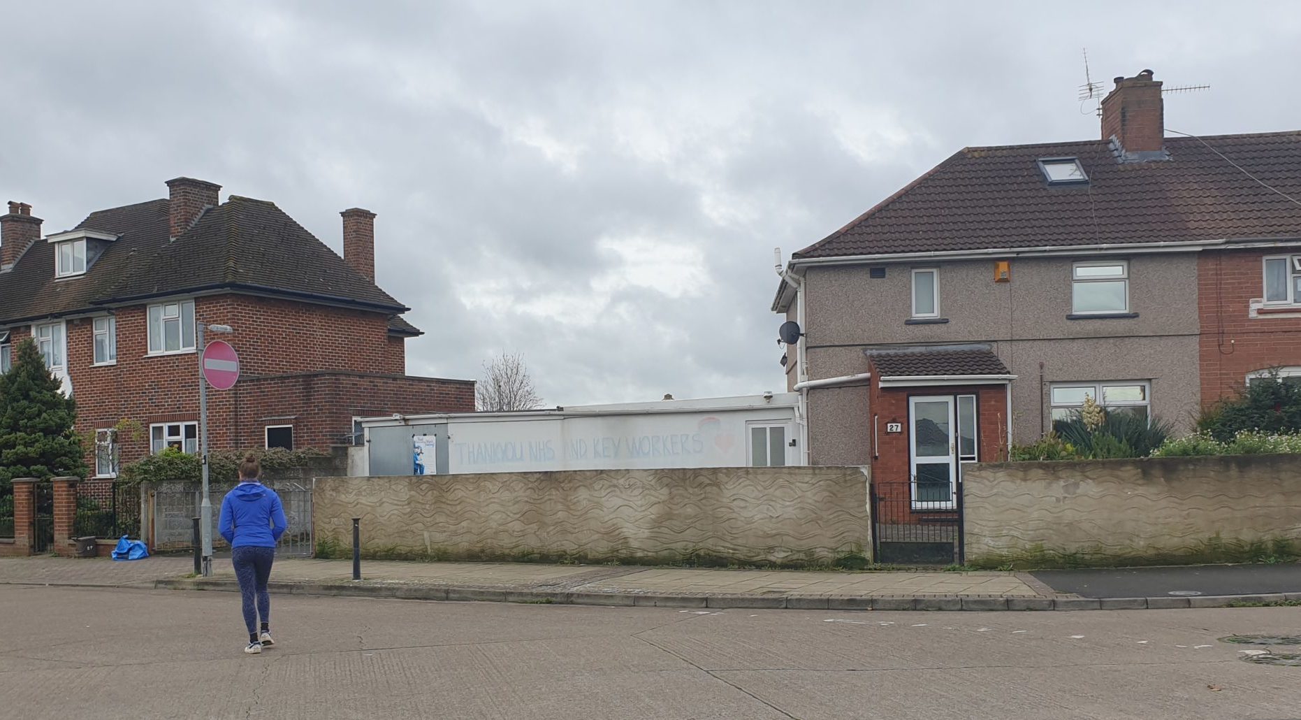 In other windows, faded rainbow signs thank key workers. Barely visible paint showing appreciation of the NHS still lines some of the streets; a reminder of the first national lockdown earlier in the year.