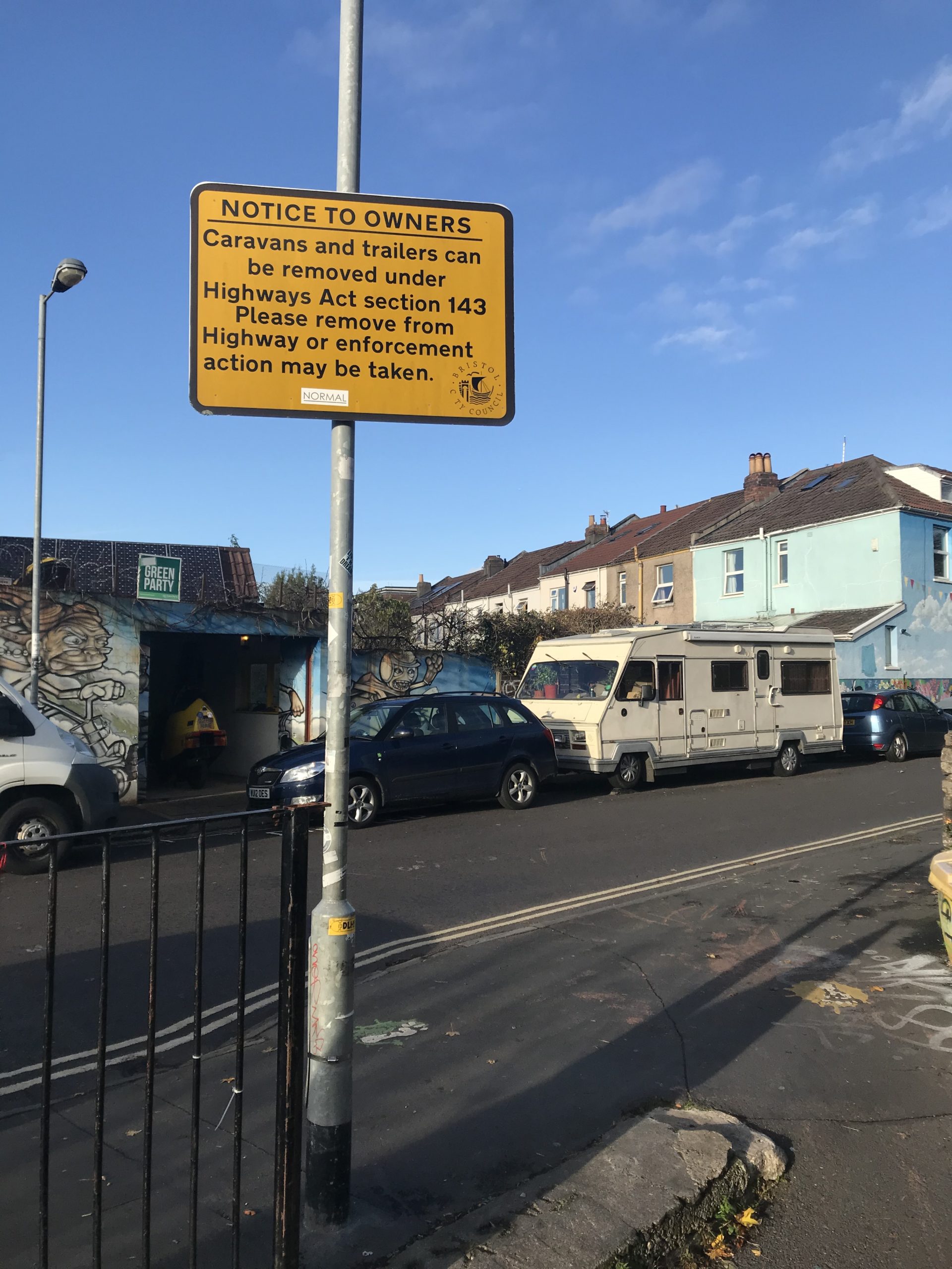 On Bruce Road, close to where a footbridge looked like it used to cross the former railway line, a sign warns that caravans and trailers parked here can be removed.