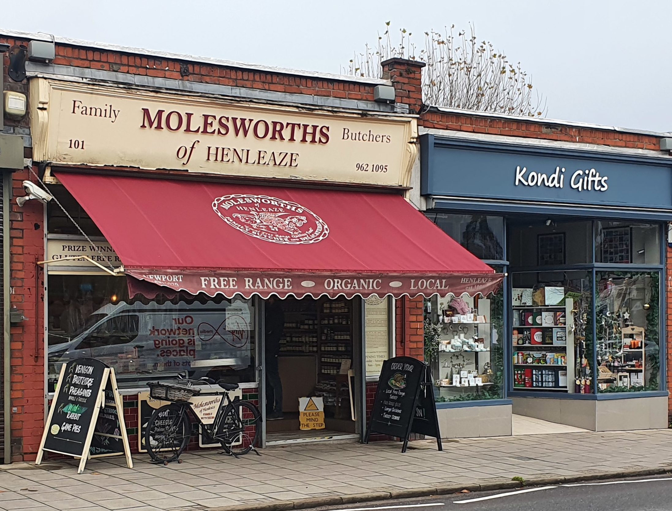 Past Redmaids High School and the deserted Henleaze Bowling Club, Henleaze Road is alive with people going about their daily business. Here, shoppers peruse their options in the fruit and veg shop and bakery, while one man pauses for a quick chat as he waits for his goods behind the counter in Molesworths of Henleaze. A chalkboard just outside urges people to order their organic turkeys ready for Christmas.