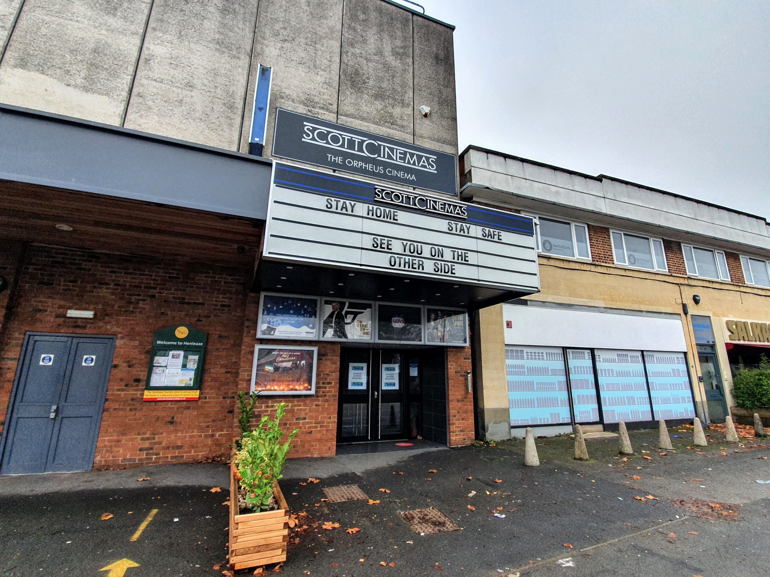 Further along, on Northumbria Drive, all is quiet but for the steady stream of traffic and one or two people heading into Waitrose. No films are advertised on the Scott Cinema board, but instead a message: “Stay home, stay safe. See you on the other side.”