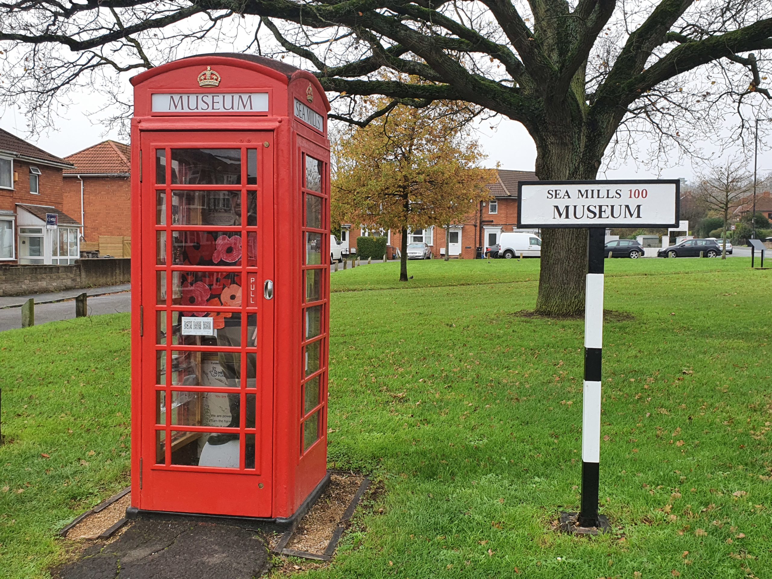 Across the road stands one of the few museums in the city that can still be enjoyed even during lockdown. Here, vibrant red poppies form part of a Remembrance Day display, which can be viewed through the glass of the former red phone box that is now home to the minuscule Sea Mills Museum.