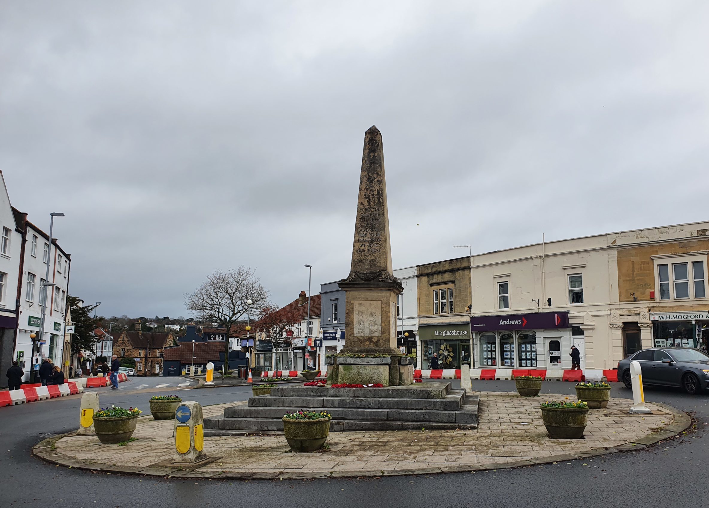 Barriers are in place to aid social distancing on Westbury High Street