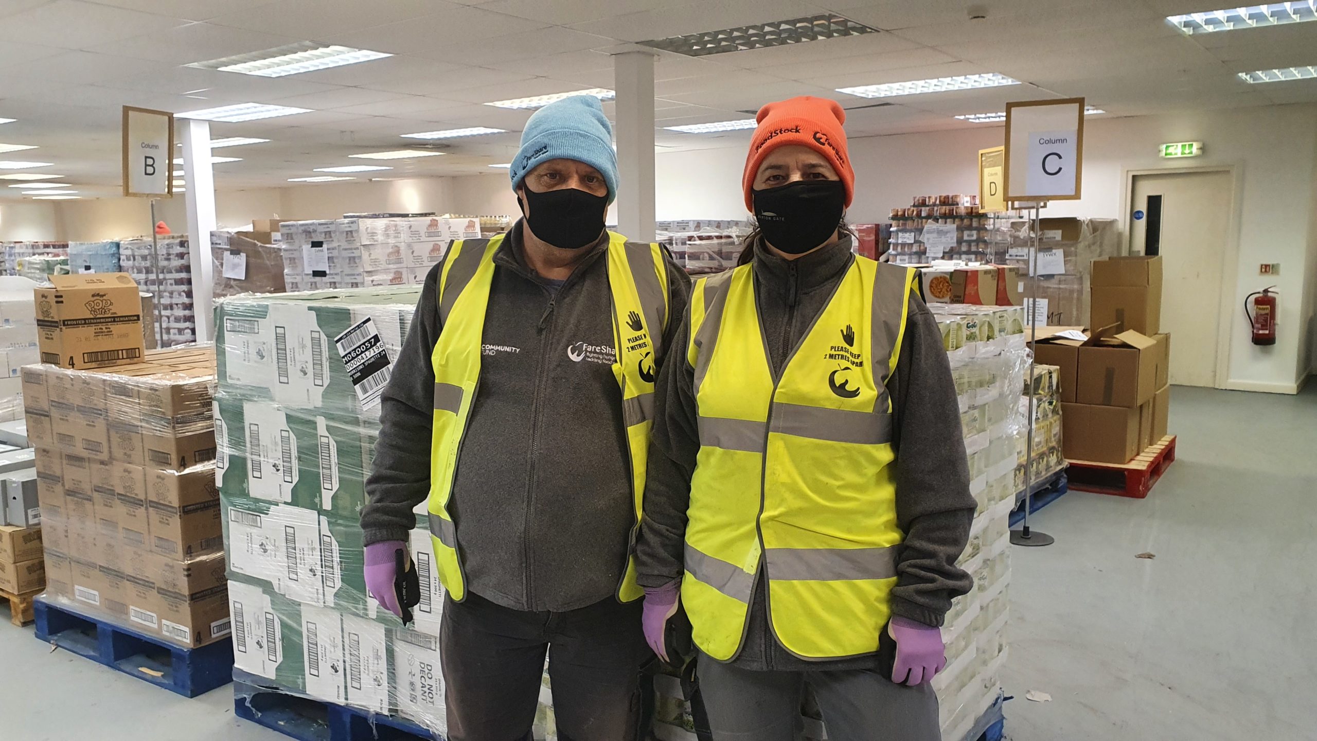 Denise Dale and Barry Coles delivery pallets of food to organisations, schools and food banks across the city