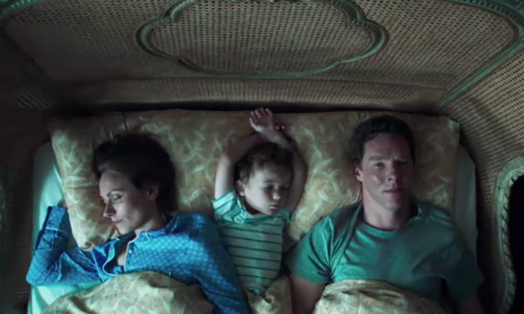 A still from Patrick Melrose, with Dainton sleeping between actors Anna Madeley and Benedict Cumberbatch
