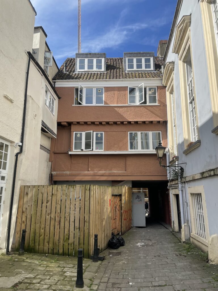 It’s certainly perplexing to find a rudimentary bin store attached to the back of a late medieval Bristol town house.