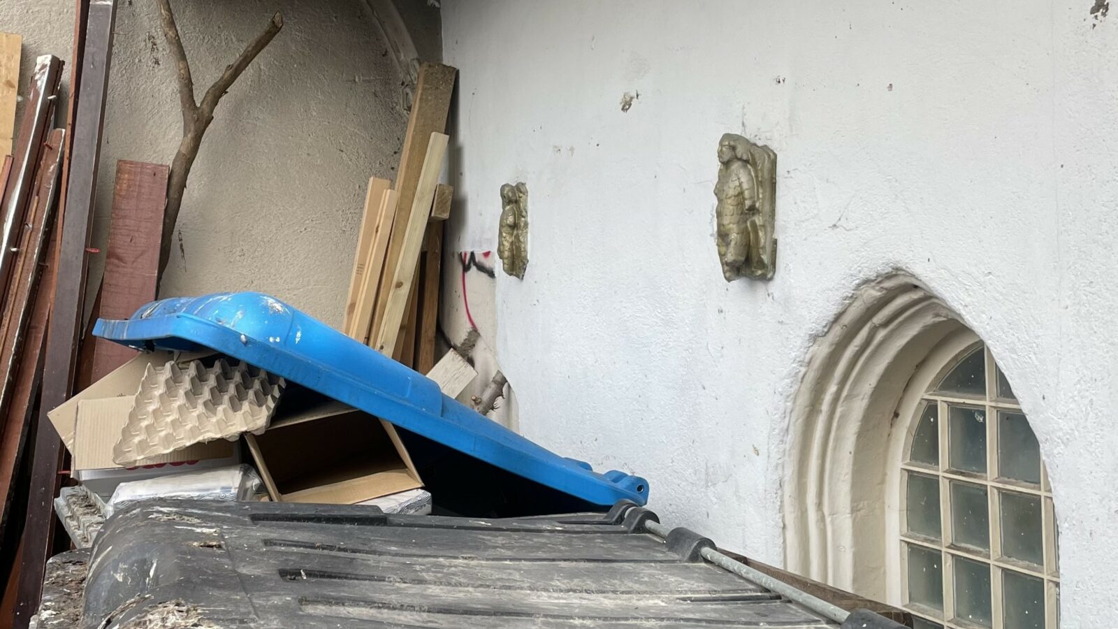 The mystery of two medieval figures marooned inside a bin store