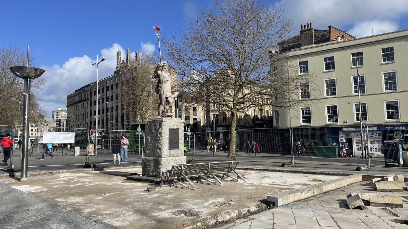 Currently surrounded by fencing, the statue of Neptune has been an ever-present figure in Bristol for centuries.