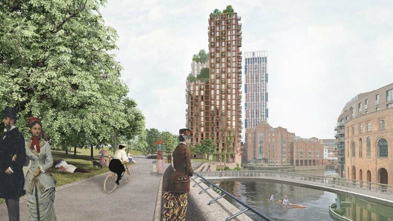 Promenading Edwardians and cascading greenery have both raised eyebrows around the proposed new tower for Castle Park – image: Groupwork & McGregor Coxall
