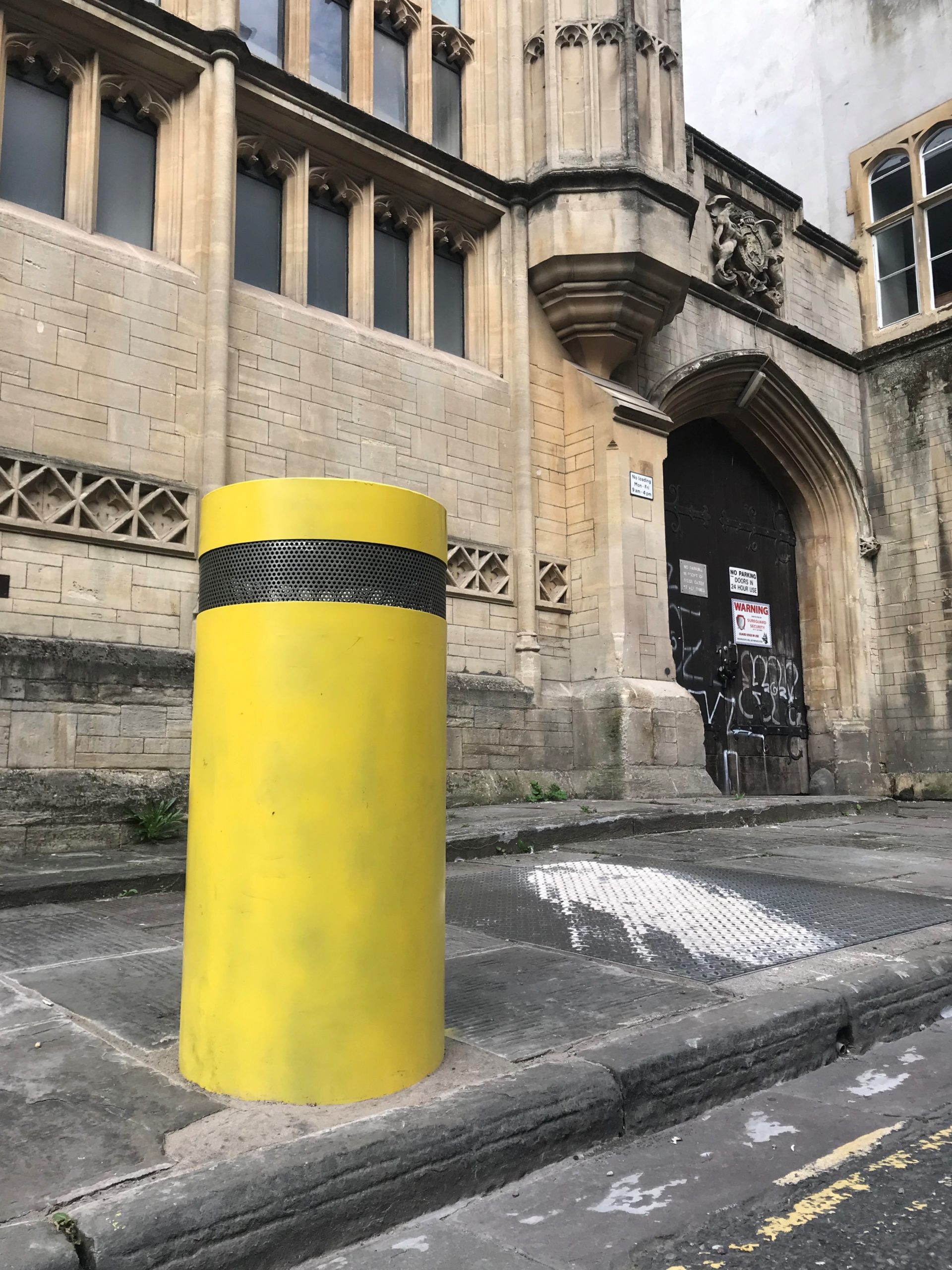 In the heart of Bristol’s Old City, the chunky canary yellow structure has replaced a more subdued metal vent which often blows out hot air; not the only hot air expelled on Small Street with the Crown Court opposite.