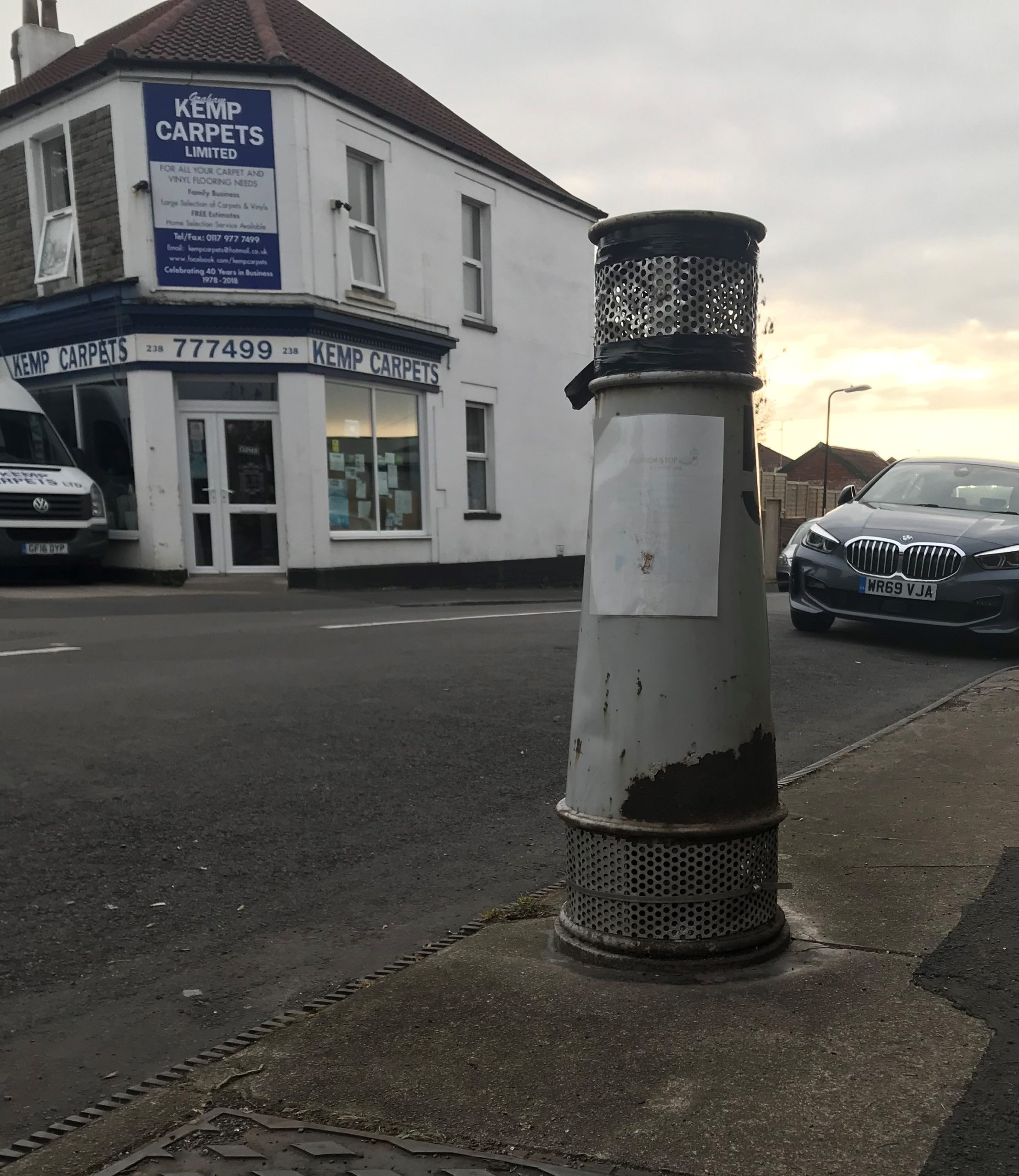 Like many vents, this one on Wick Road in Brislington has a poster attached to it – photo: Martin Booth