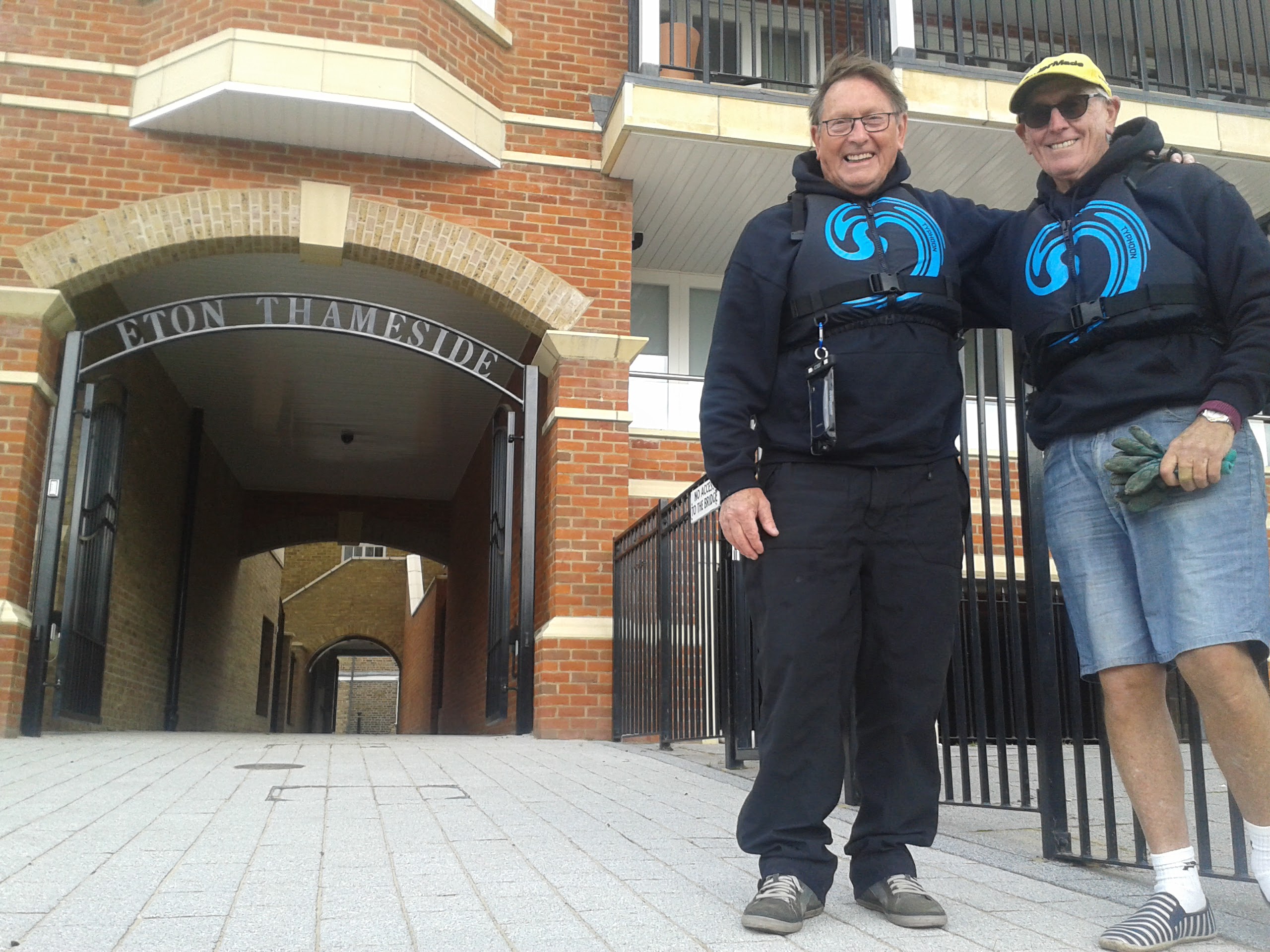 Mike and brother Terry took a quick breather and a photo opportunity at Eton College’s boat yard – “all very posh, of course, and not very often Southmead goes to Eton” – and also had to land their boats in people’s back yards when they reached the end of the day and couldn’t find a way off the river and back to the support vehicle following them.
