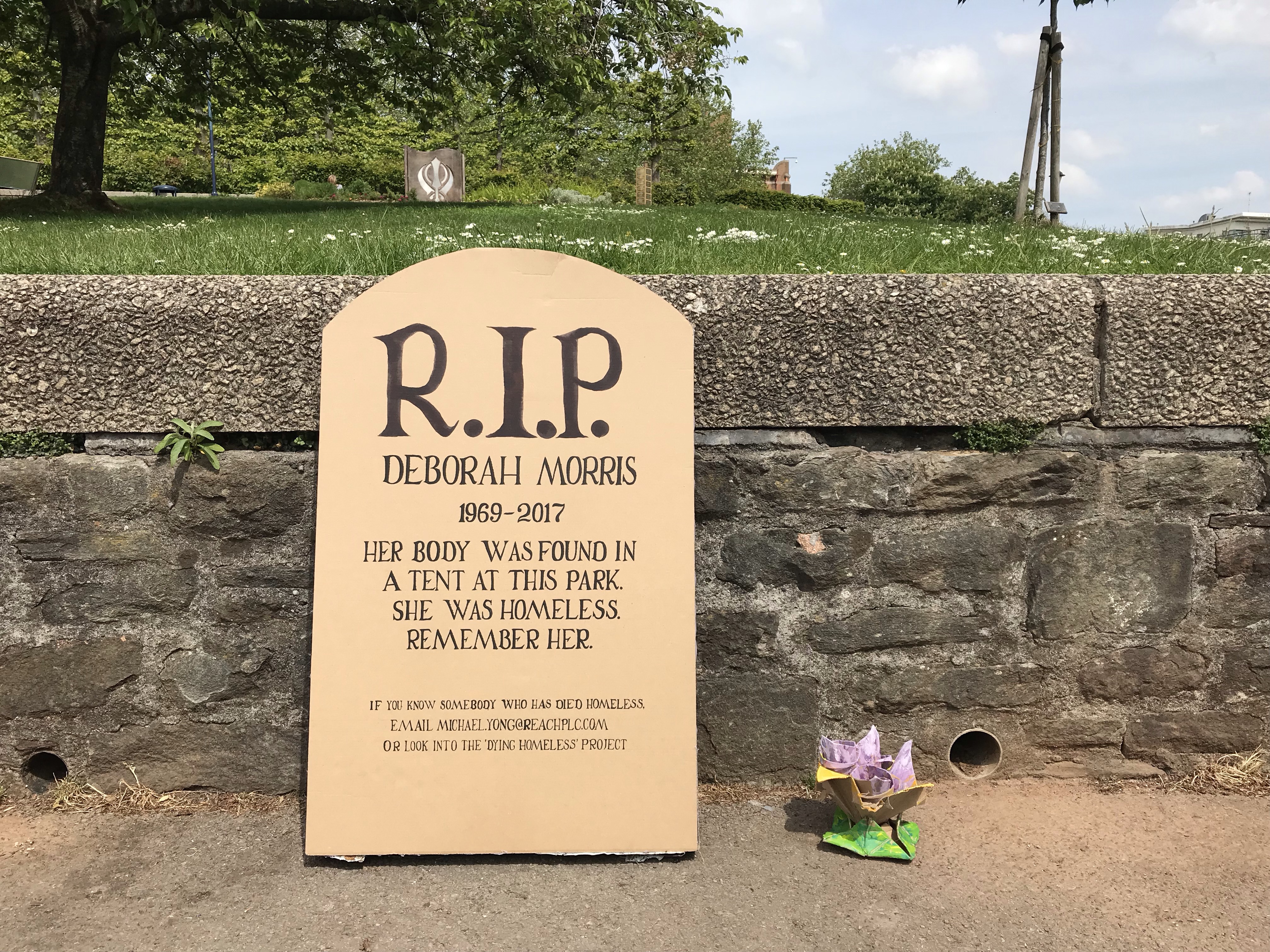 Just recently, a makeshift headstone has been placed to pay tribute to Deborah Morris, who died in a tent in the park in May 2017.