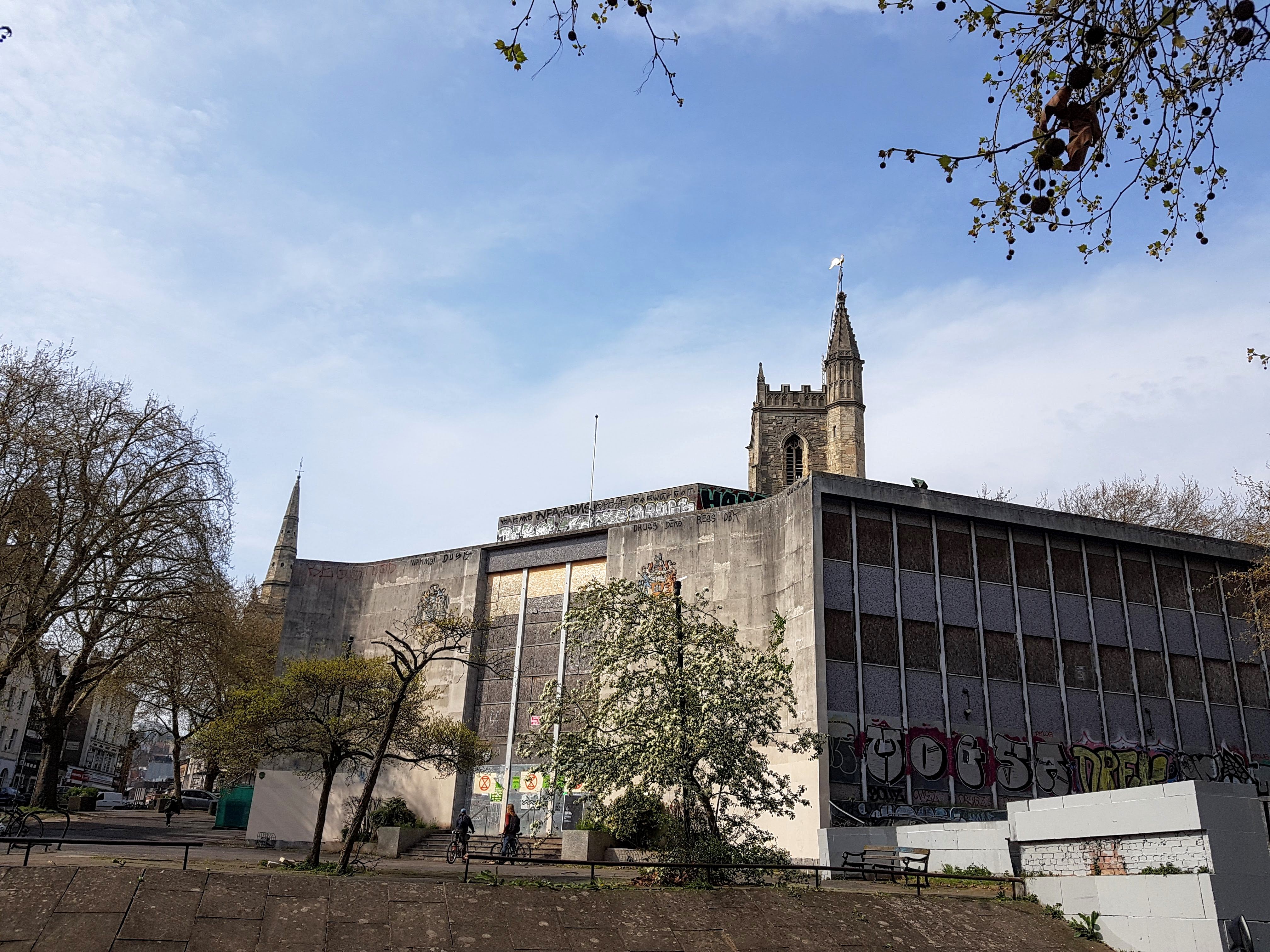 The site upon which a park was created in the 1970s was, for centuries, marked as the geographical and commercial centre of the city – on the crossroads of Wine Street, High Street, Broad Street and Corn Street.