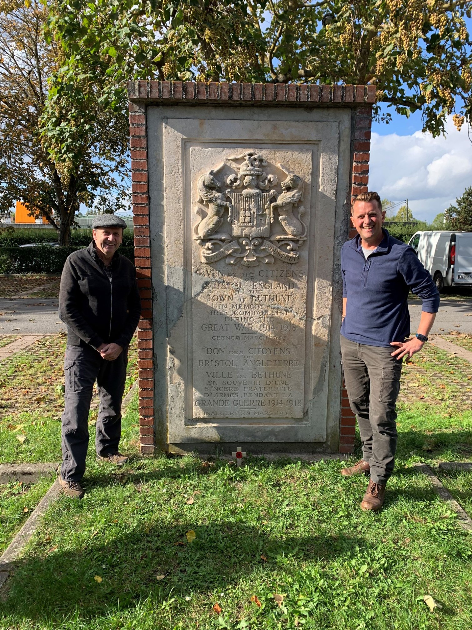 The panel which now stands in the out of town car park in Béthune reads: ‘Given by the citizens of Bristol, England, to the town of Béthune, in memory of true comradeship during the Great War, 1914-1918. Erected 1925’