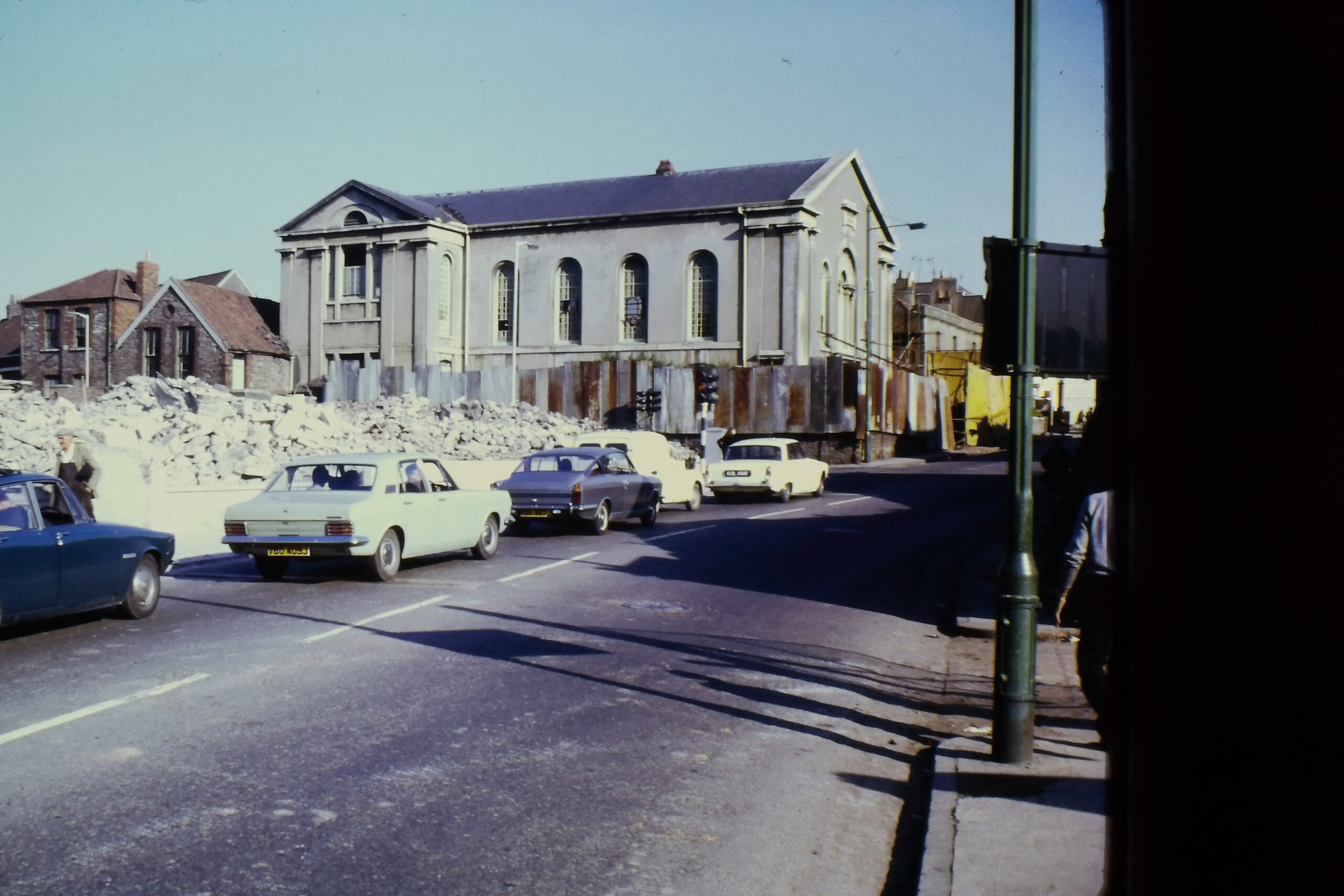 The Wesleyan Chapel in 1971, alongside the other buildings on the stretch, was demolished to make way for the M32 motorway, 1971 – photo: Bristol Archives 43960