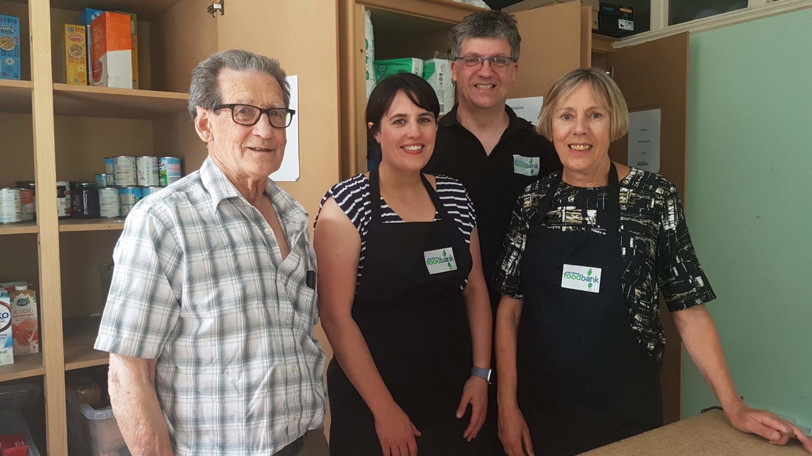 Pete Garniner, Paul Hunter, Jo Harris and Pat Barnes at East Bristol Food Bank