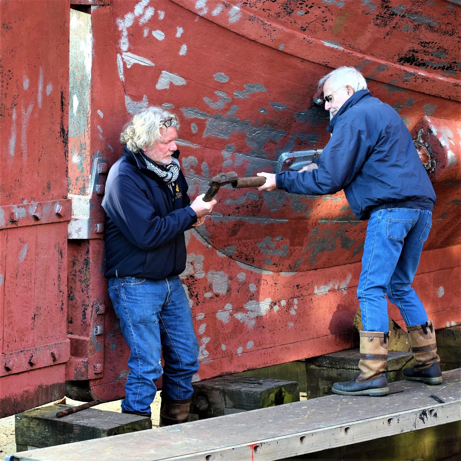 Captain Rick Wakeman and volunteer Ray work on The Matthew. Photo by The Matthew of Bristol