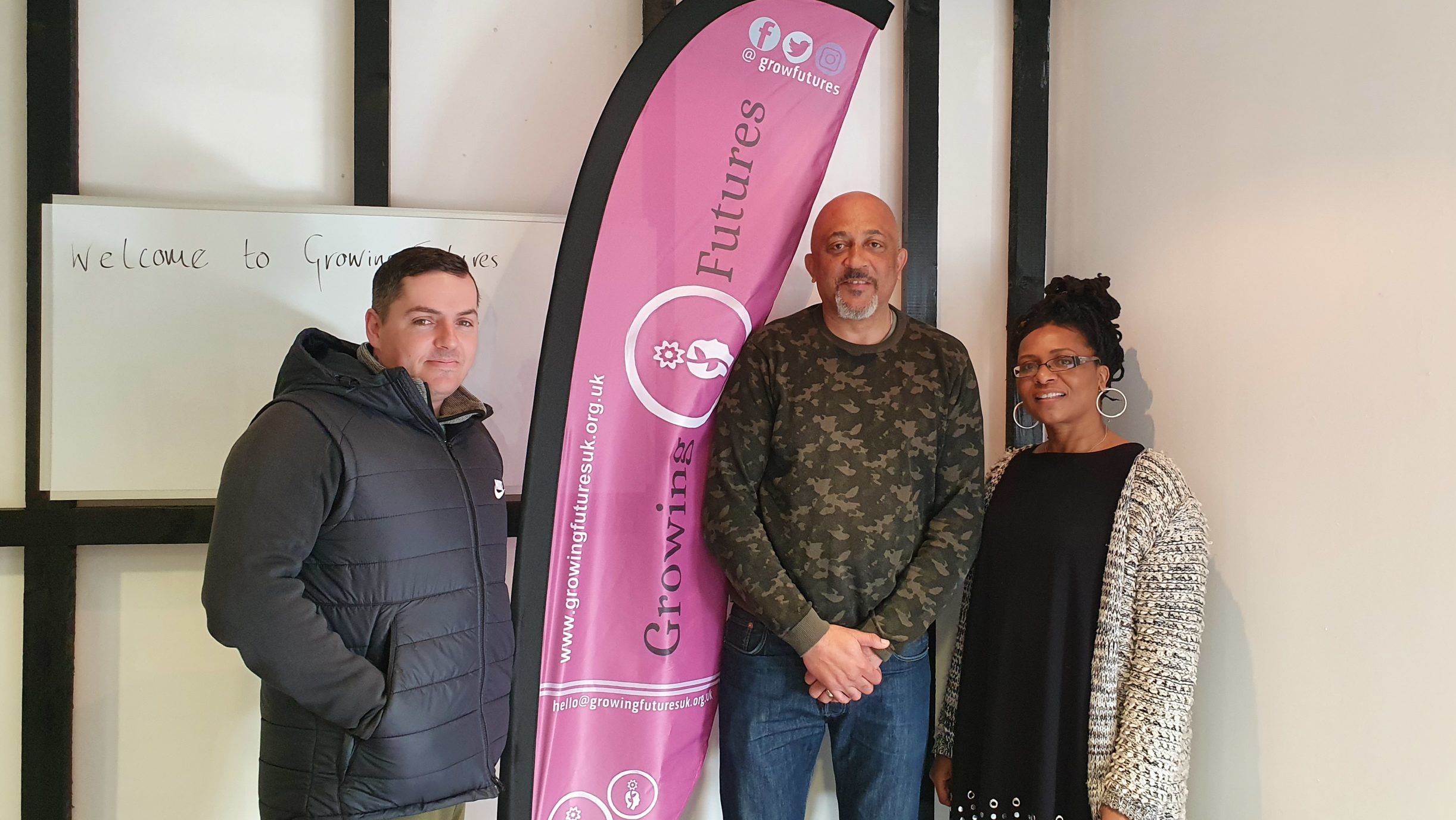 Ian Fleming (left), Desmond Brown (centre) and Beaula McCalla (right) of Growing Futures say existing systems are failing come people – photo by Ellie Pipe
