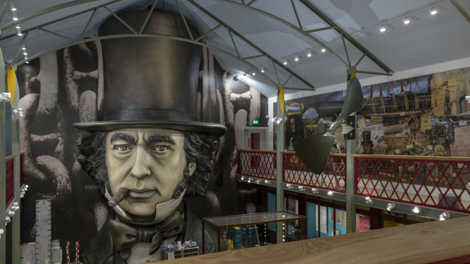 Walking through a door in the Shakespeare Room, Brunel’s giant head – based on the famous photo of the reckless engineer standing in front of a barrel of chains – is glimpsed for the first time.