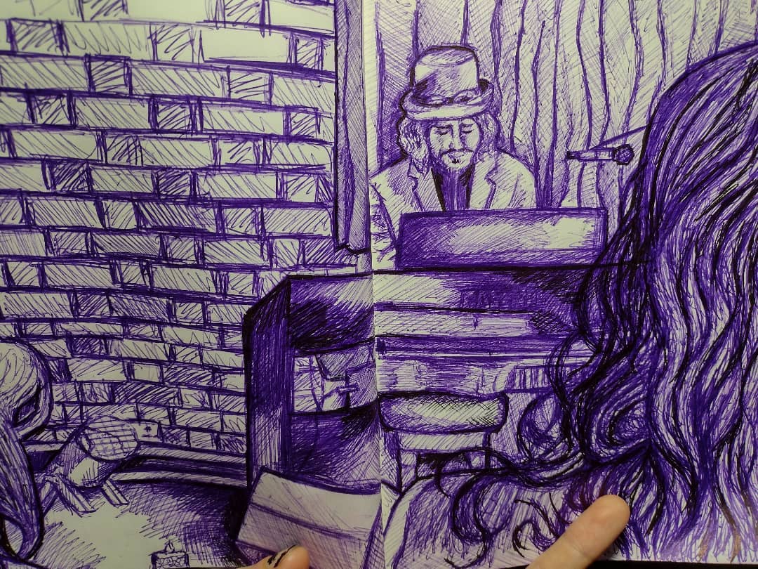 Dayne explained that he first developed his low-key but intricate artistic style by sketching the performances of musicians at open mic nights while he was studying for a degree in illustration in Swansea.