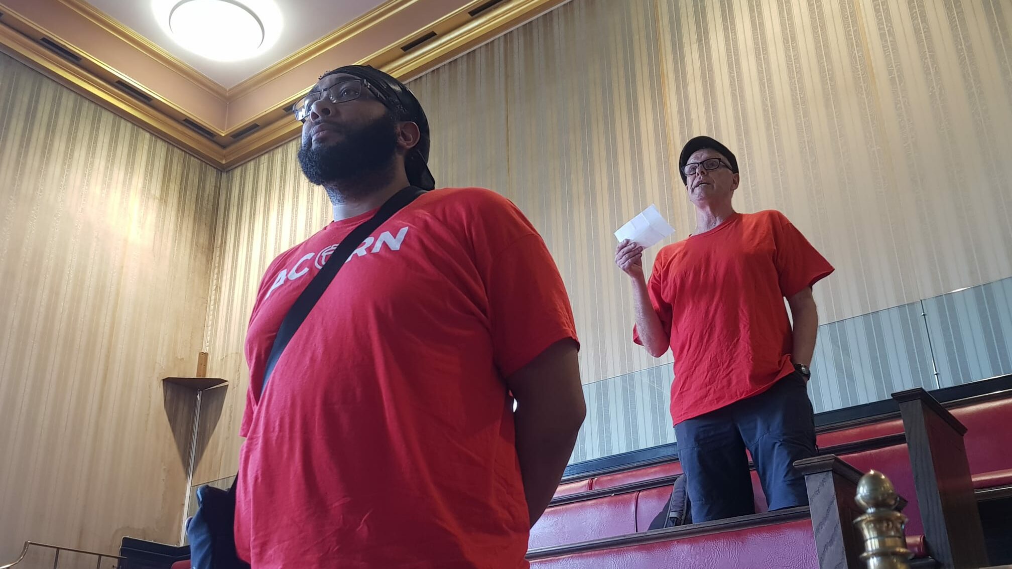 Housing union, Acorn, interrupted a number of full council meetings at City Hall this year to protest council tax slashes and the council’s treatment of Barton House residents, for which they could be banned from future meetings – photo: Mia Vines Booth