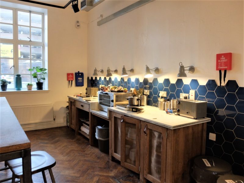 The first floor is dedicated to a communal space, where guests can hang out and cook