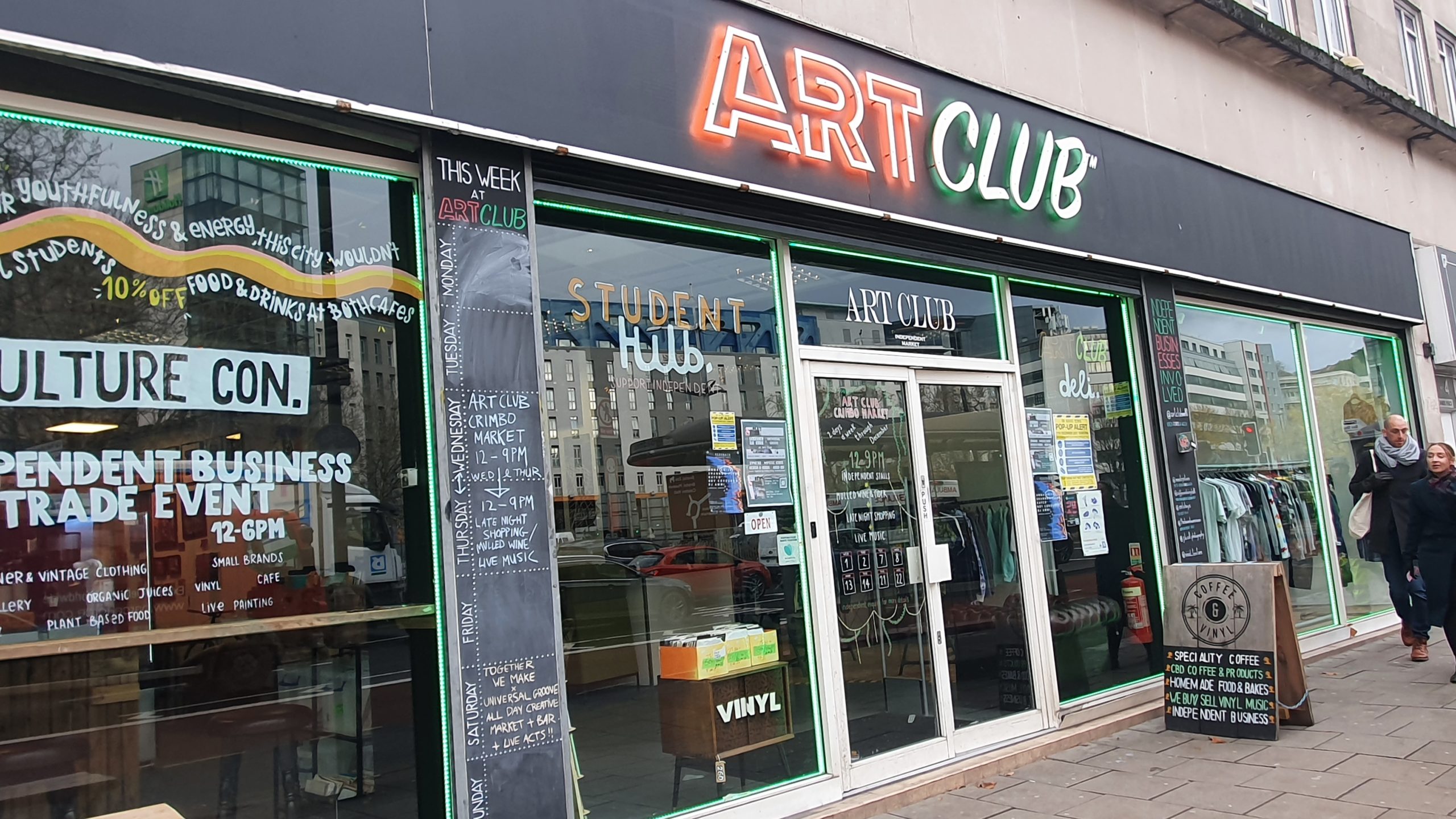 Around the back of the former Debenhams store, just along from its metal-shrouded windows on Bond Street, the bold lettering of a sandwich board marks the entrance to the newly-opened Art Club, an independent enterprise featuring a number of local businesses.