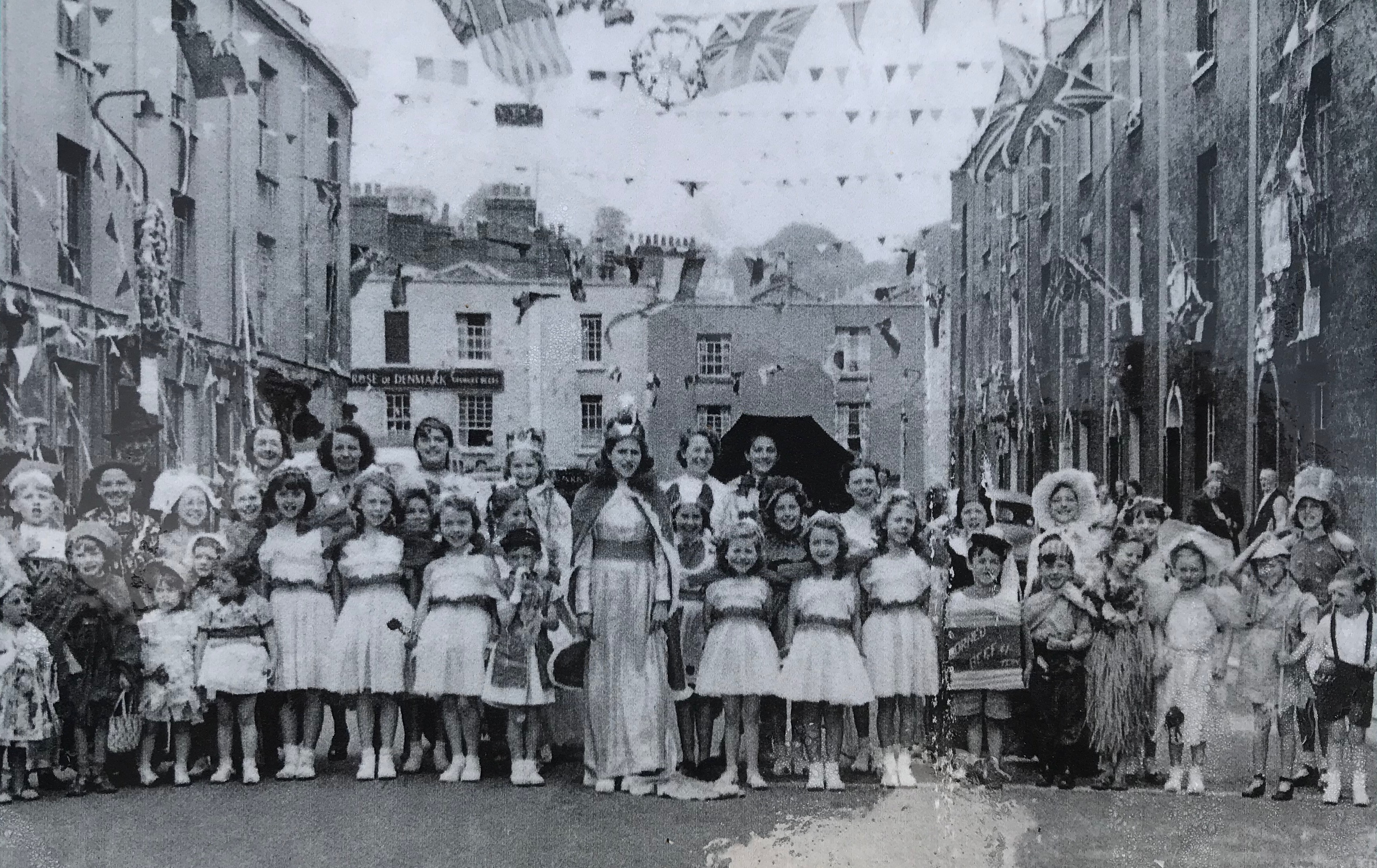 A 1953 coronation party on Brunswick Place and Caroline Place (both now demolished) with the Rose of Denmark in the background