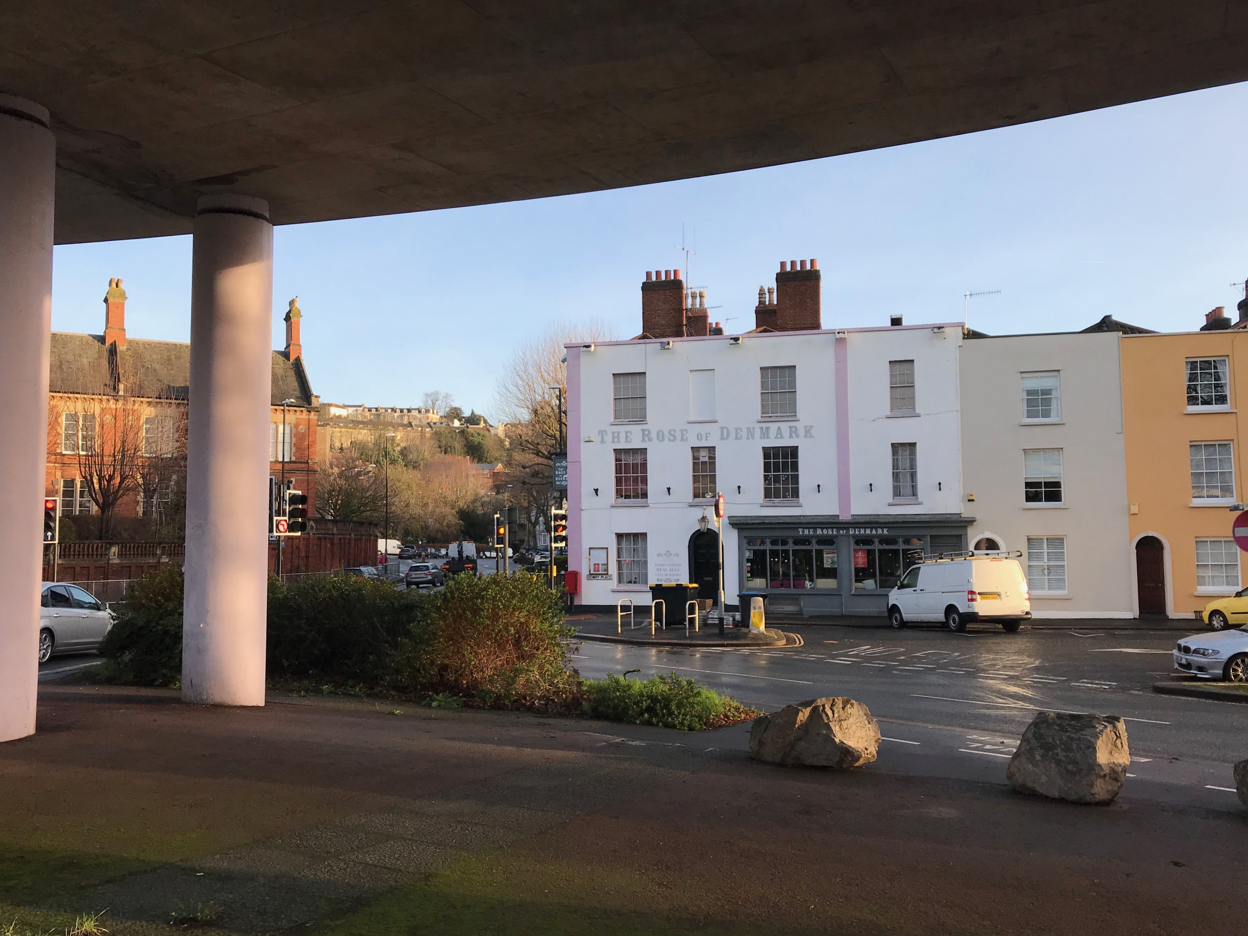 The Rose of Denmark today is moored amidst the 1960s road network