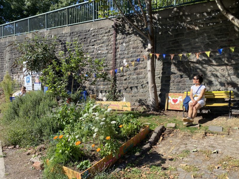 Sitting on a bright yellow bench and with knitted rainbow earrings dangling from her ears, Bernardita Munoz-Chereau explains how lockdown gave her the boost needed to turn her idea of a community garden into a reality.
