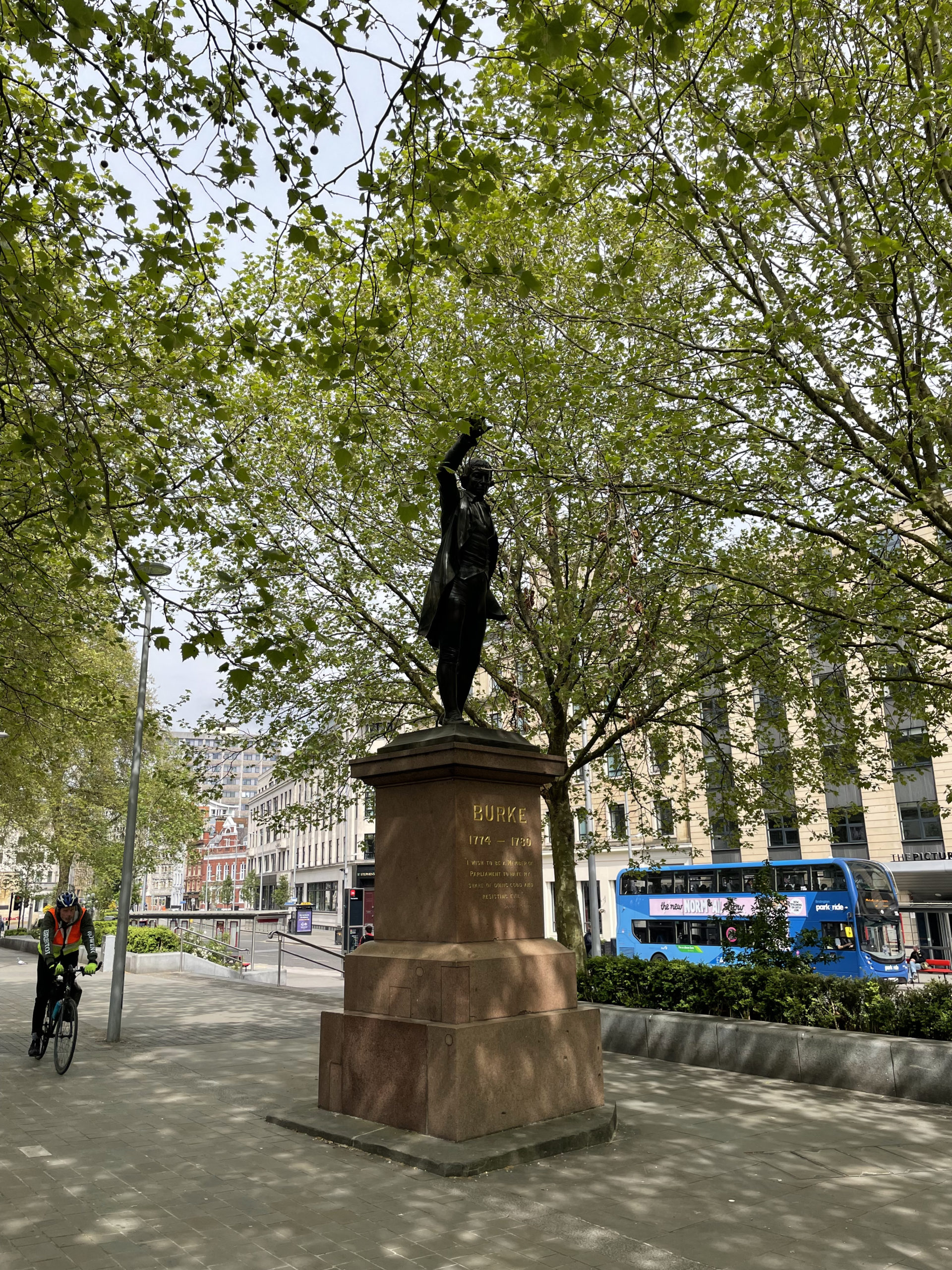 Edmund Burke, an MP for Bristol between 1774 and 1780, is remembered via a statue by St Augustine’s Parade – photo: Betty Woolerton