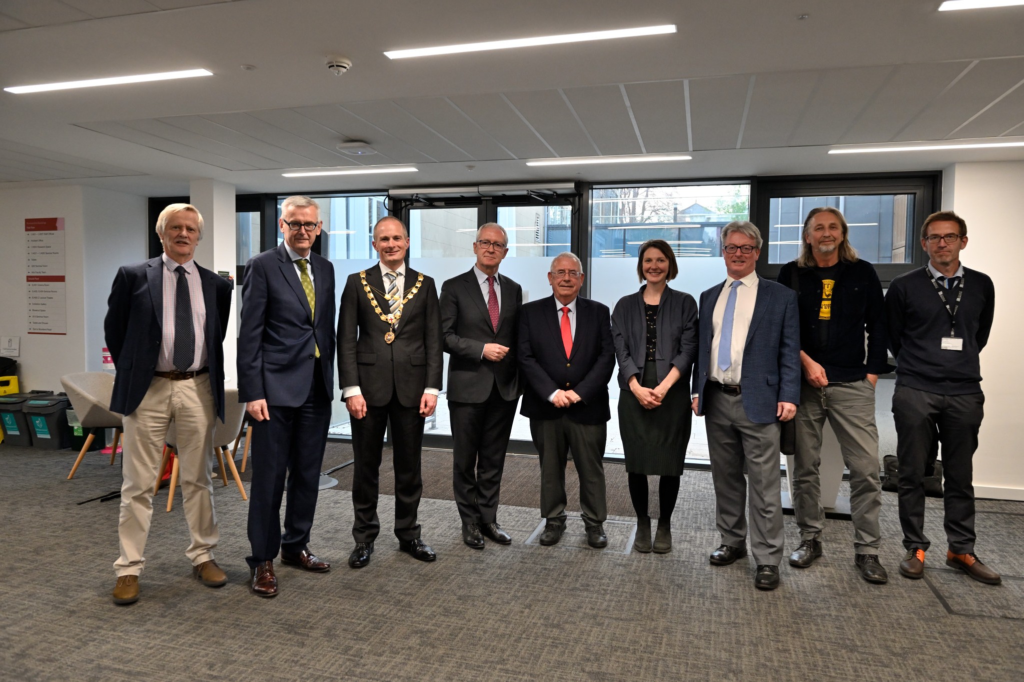 Ireland’s Ambassador to the UK, Adrian O’Neill, visited Bristol on for an event highlighting the historical links and celebrating contemporary ties between the cities of Dublin and Bristol (From left to right: Professor David Dickson, Ambassador Adrian O’Neill, Lord Mayor Steve Smith, Professor Hugh Brady, Deputy Lord Mayor of Dublin Joe Costello, Dr Erika Hanna, Professor Brendan Smith, Professor Steve Poole and Professor Martyn Powell) – photo: Bhagesh Sachania Photography