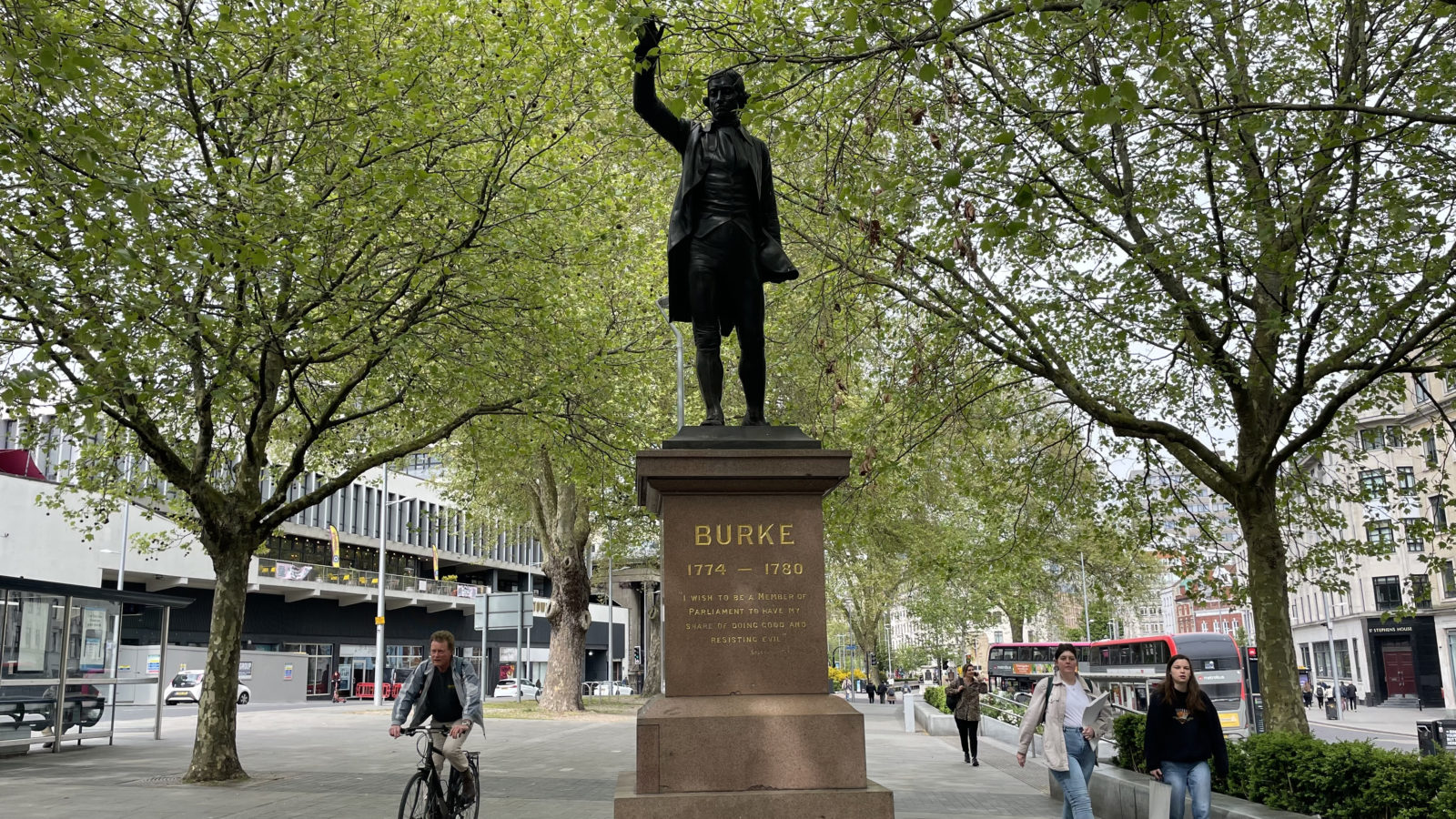 Edmund Burke, an MP for Bristol between 1774 and 1780, is remembered via a statue by St Augustine’s Parade – photo: Betty Woolerton