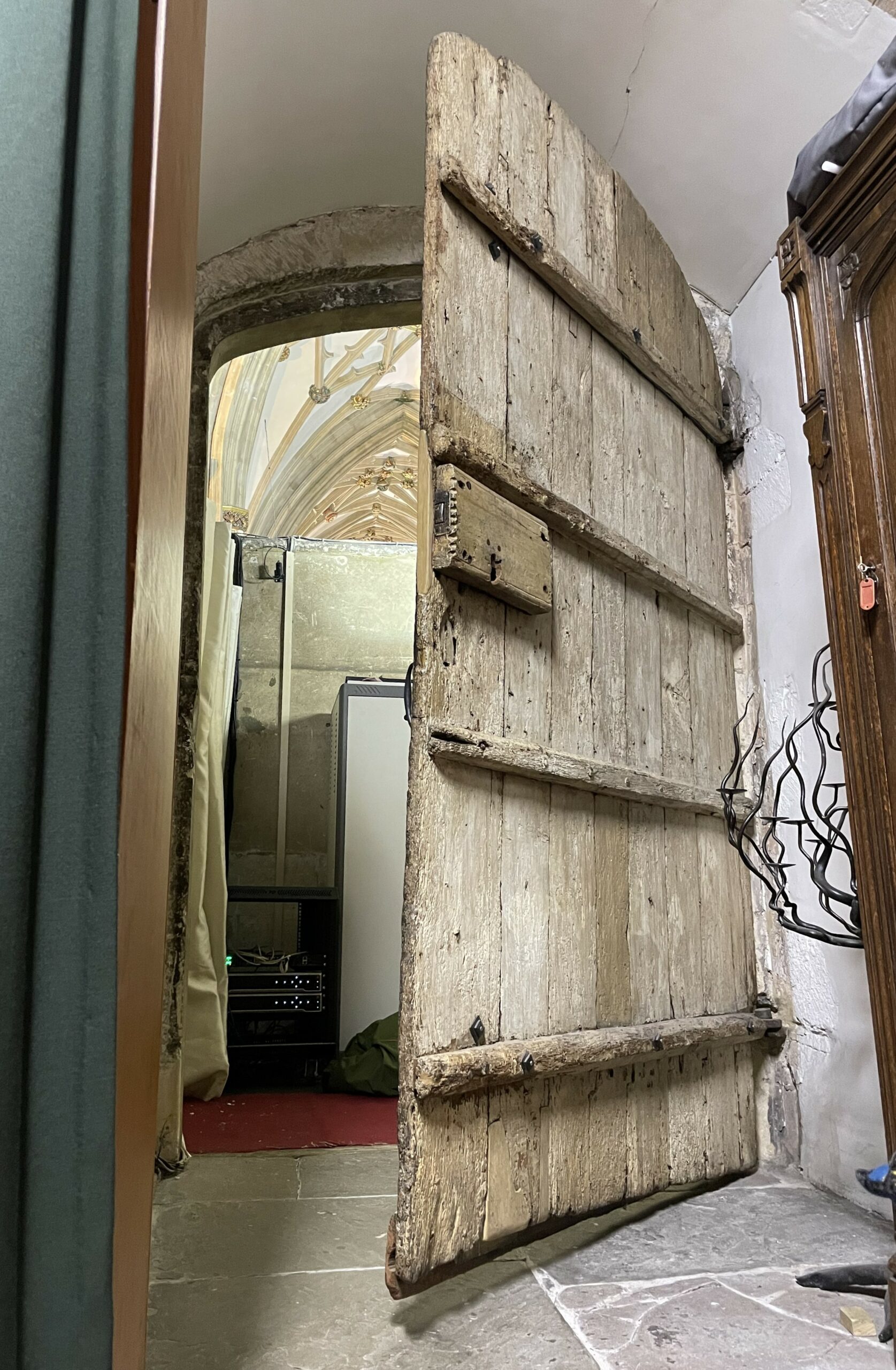 The oak door is at the top of the night stairs at Bristol Cathedral, which used to lead to the abbey’s dormitory.