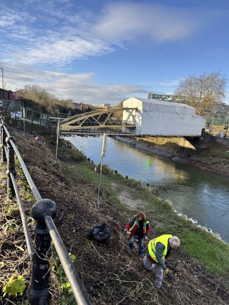 In the early months of each year, when the vegetation has died back and before birds and other wildlife start to nest and breed, members of the Friends of the Avon New Cut (FrANC) undertake several systematic litter picks and maintenance of the New Cut riverbanks.